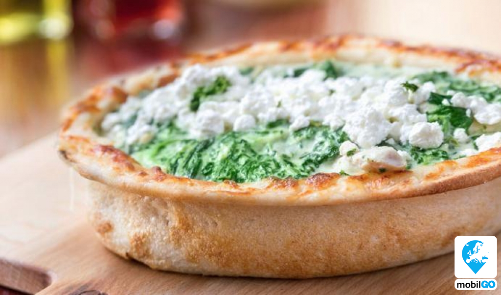 (Pizza tészta, Mozzarella, Vaj, liszt, Tej, csirkemell, túró, paraj, fokhagyma)