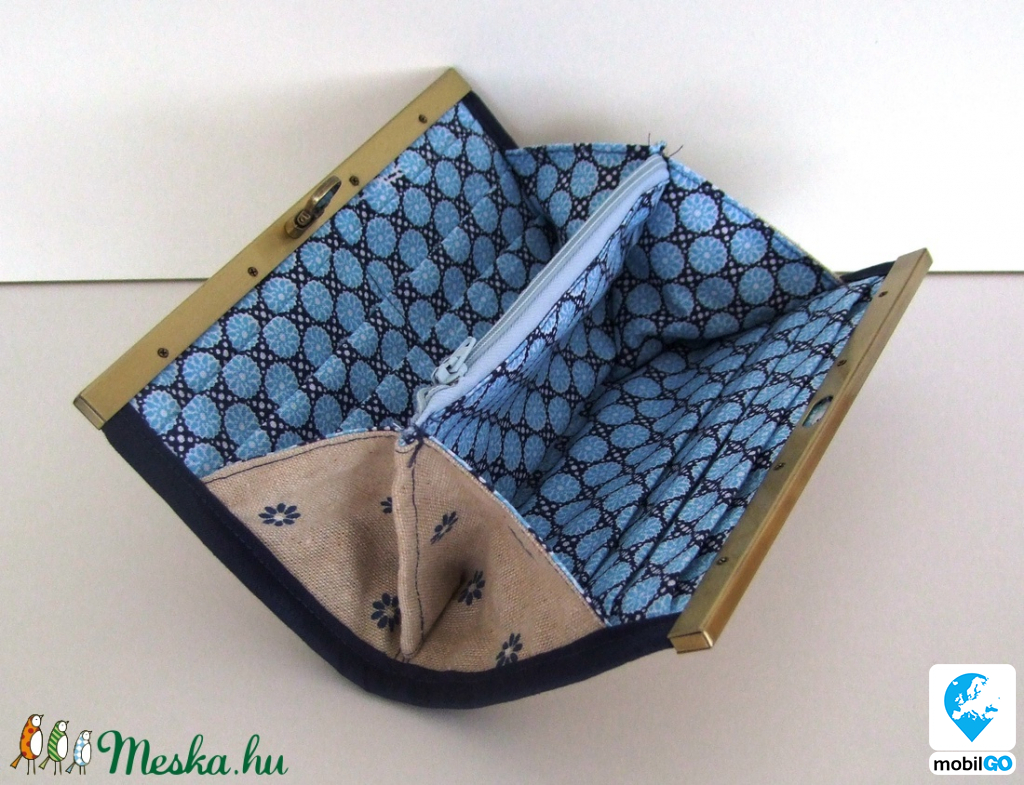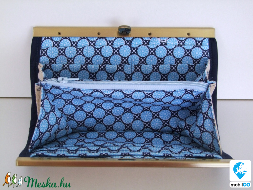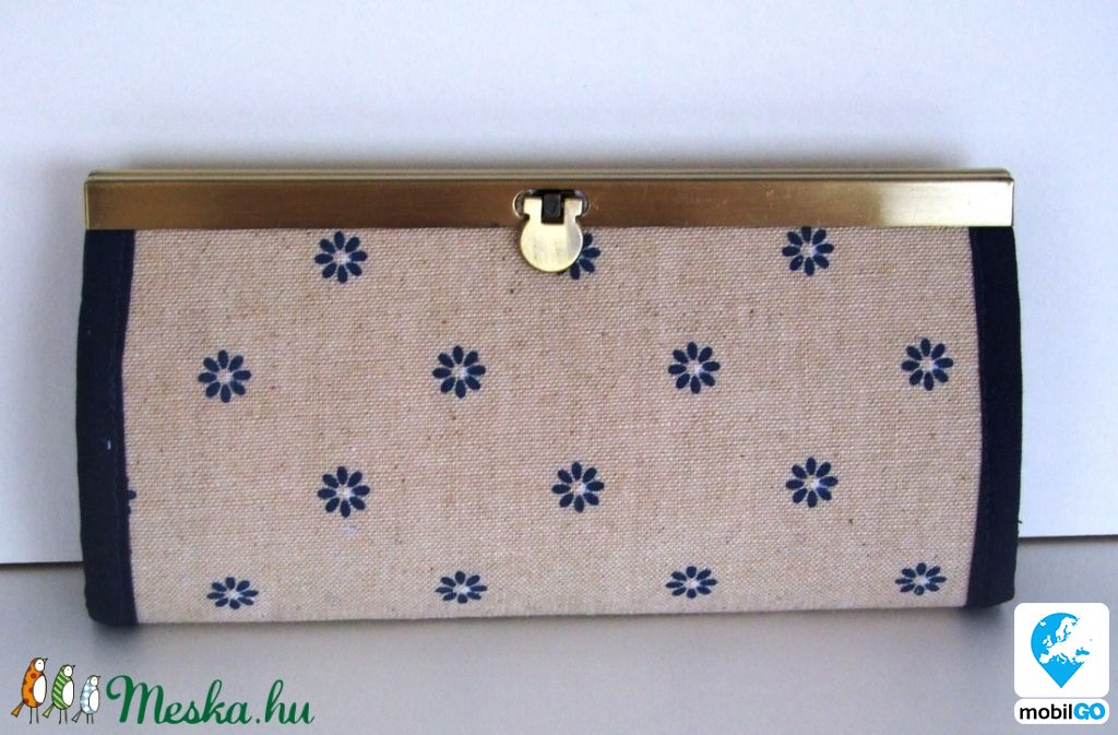 19 cm-es bronz színű fém keretre lenvászonból varrtam ezt a mutatós csatos pénztárca/irattartót, belseje színben hozzáillő organikus pamutvászon.