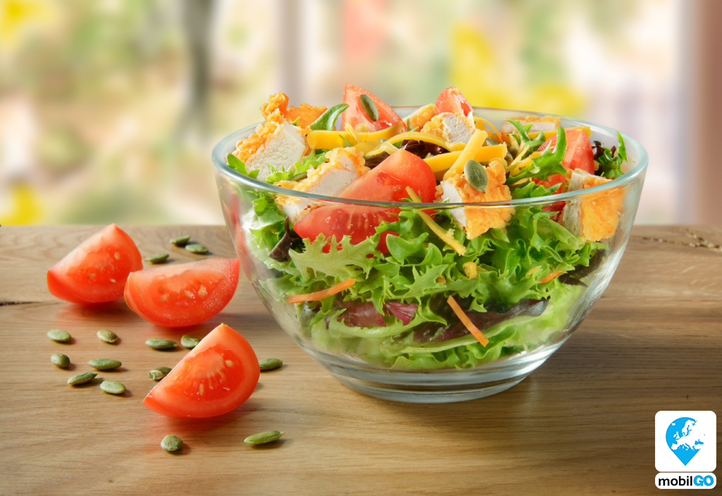 Ötféle kevert saláta, friss paradicsom a legjobb termelőktől, ropogós, pirított tökmag, illatos cheddar sajt és szeletelt csirkemell filé, ahogy a Zingerből ismered. Karakteres és könnyű, Piccante vagy Caesar öntettel szolgáljuk fel.