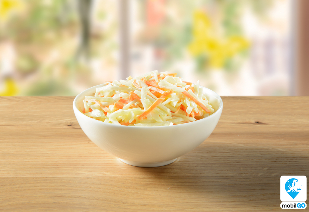 Finomra vágott fehérkáposzta, sárgarépa, egy kevés hagyma, majonézes öntettel – a KFC egyik leghíresebb fogása, hosszú évek óta sláger nálunk.