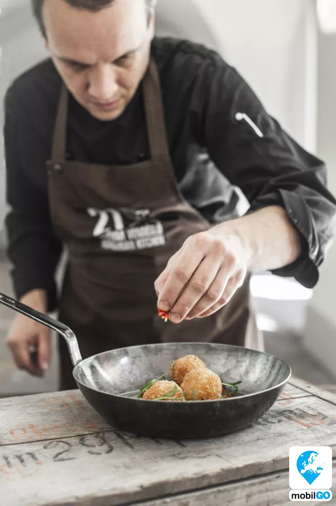 Szerettünk volna egy olyan magyar éttermet létrehozni, mely visszaadja a rég elfeledett és hiányzó „Szindbádos” gasztronómiai élményt, de mindezt originálisan és újszerűen, a tipikus „magyaros étterem” kliséket mellőzve mind a konyhában, mind a vendéglő kialakításában is. Mindezeknek köszönhetően reméljük sikerült létrehozni egy olyan magyar vendéglőt, ahol jól érzhetjük magunkat mi magyarok is, ahol felidézhetik a kedvenc régi ízeiket egy kissé izgalmasabb megközelítésben és mindezt egy kötetlen kényelmes hangulatban. Reméljük Önök is úgy érzik majd, hogy a 21 az a kedvenc helyük, ahol szeretnek egy kicsit többet enni, kicsit hangosabban beszélni és kicsit több bort megkóstolni, mint egy étteremben általában…