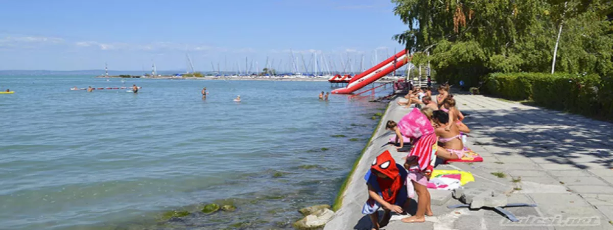 A balatonvilágosi Club Aliga strand 2 km hosszú saját Balaton-parttal és 10 hektáros strandterülettel rendelkezik.