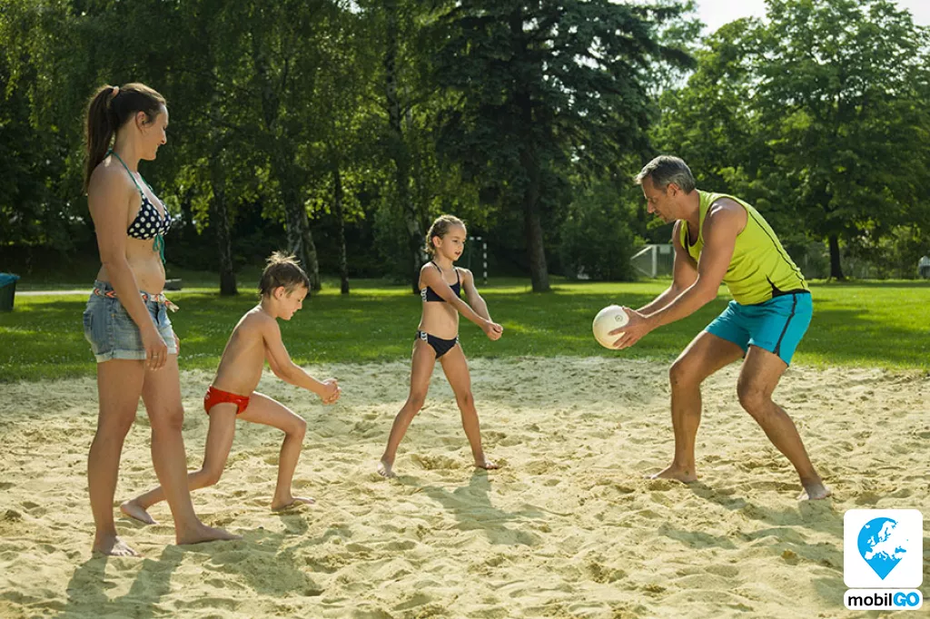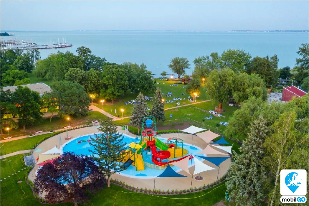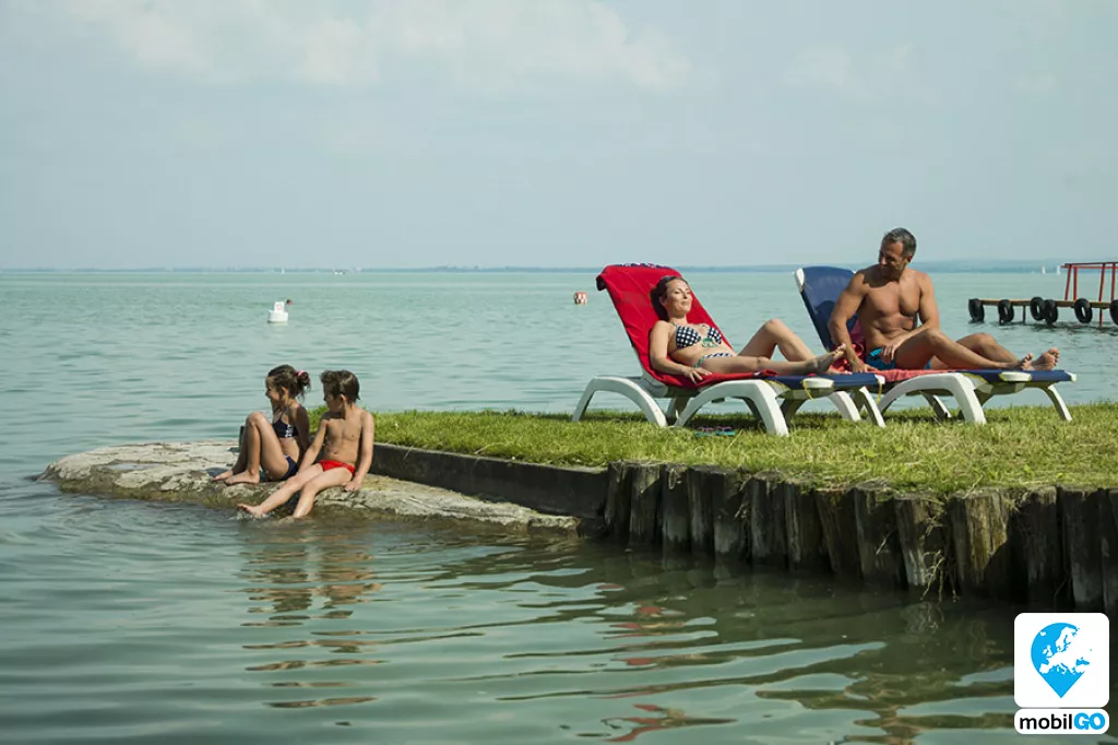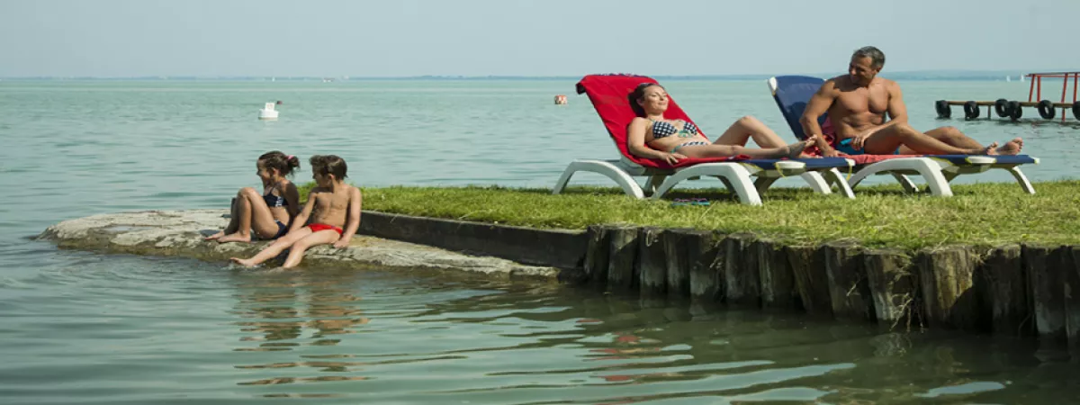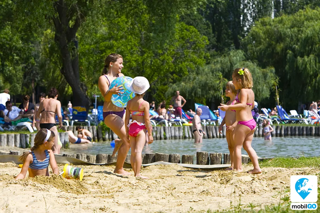 A gyermekbarát partszakaszon homokos lagúna, játszótér, animációs programok, gyerek büfé sarok és tematikus hétvégék várják a családokat.