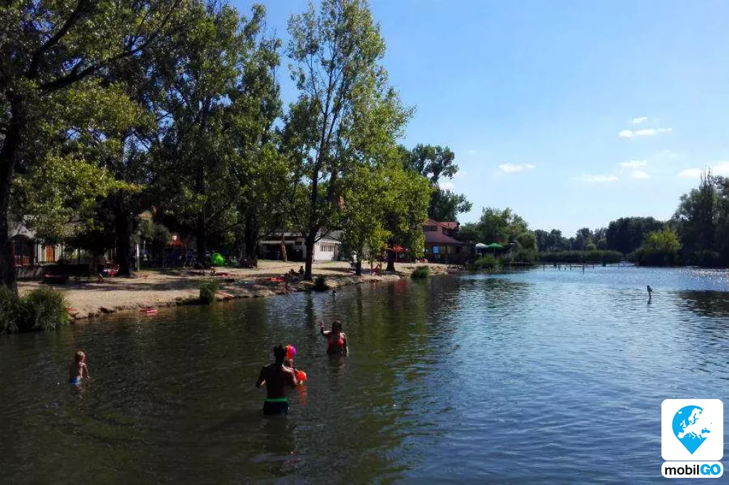 Budapest vonzáskörzetében található a Malom-tó, amelynek egyik részén strandolni, míg a