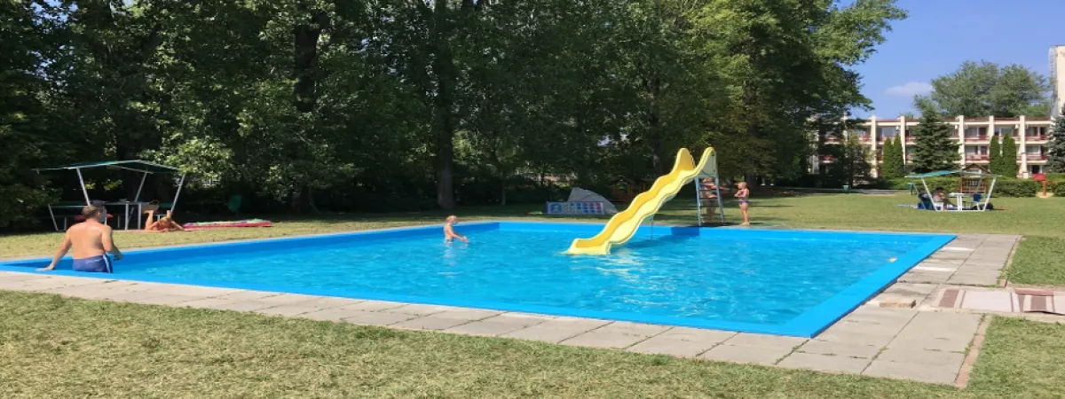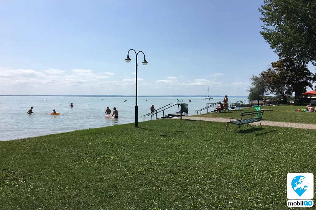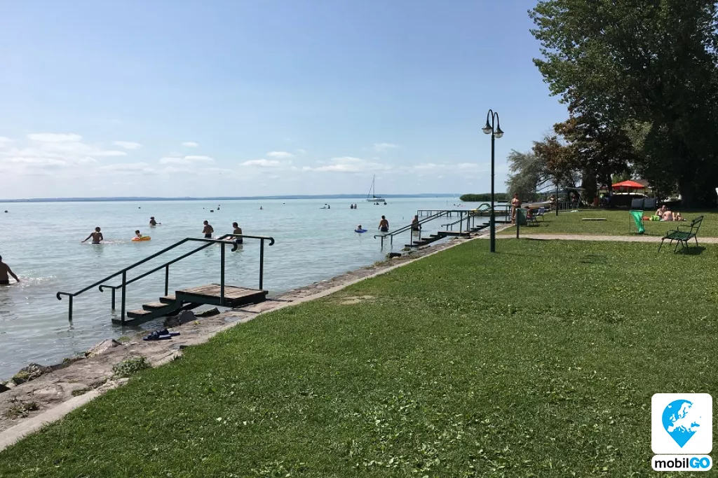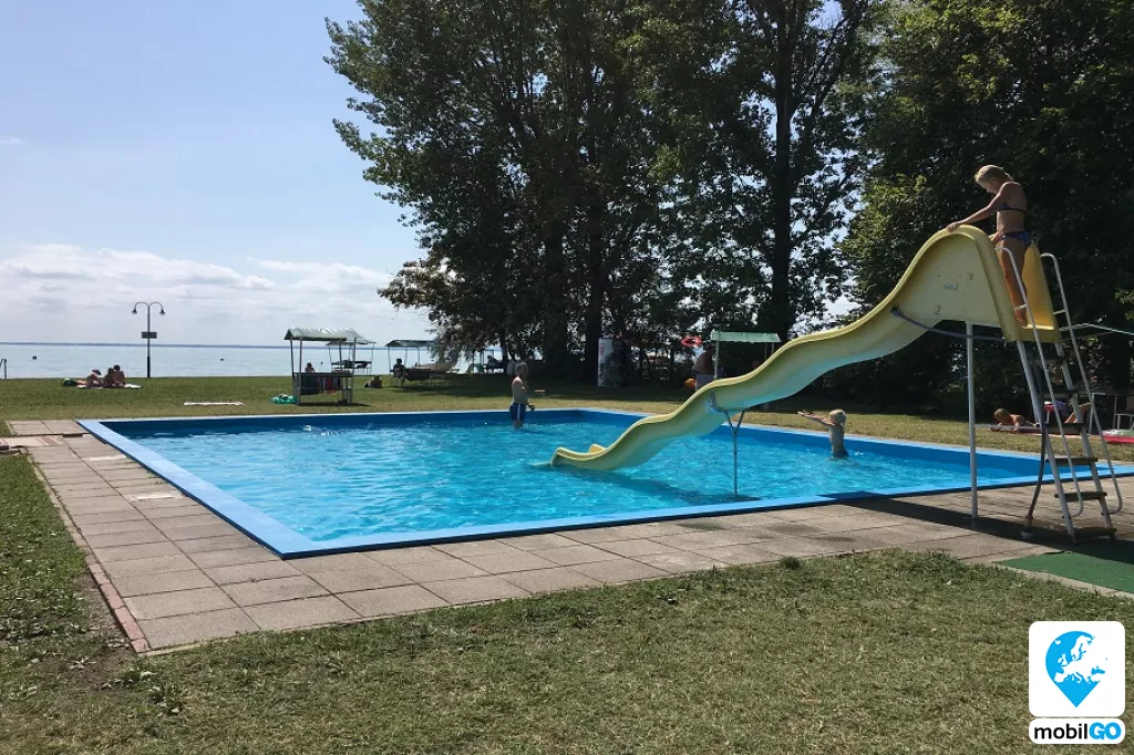 A Nereus Strand csúszdás gyermekmedencével várja a családokat Balatonalmádi partján.