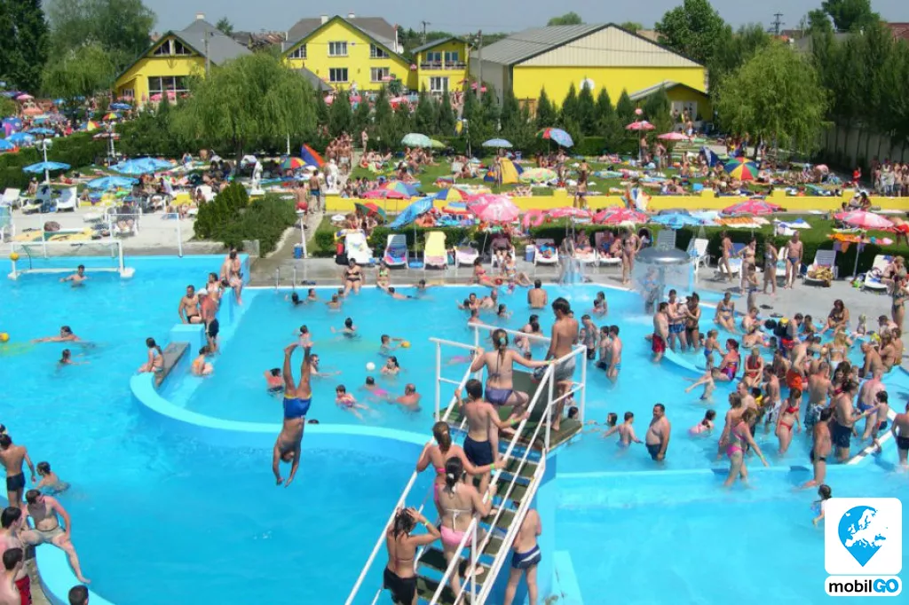 A szigetszentmiklósi strandon, az Oázis Wellness Parkban nyitott medencék, csúszdák és