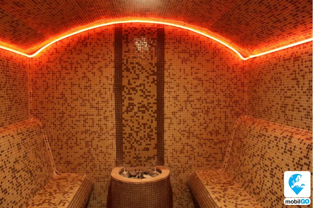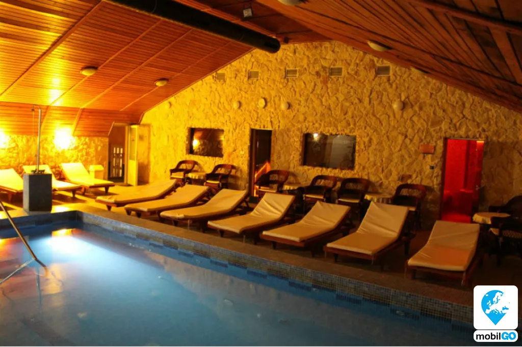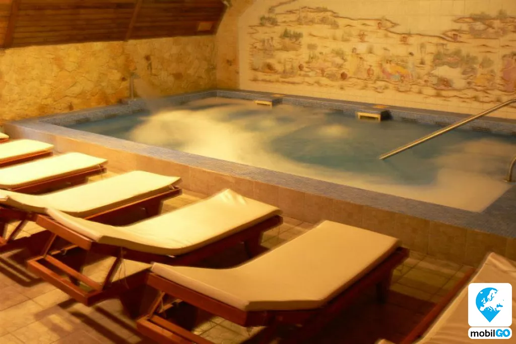 Beltéri Wellness (34 - 36 C - os pezsgő - élmény medence , szauna, hidegvizes csobbanó, gőzkabin, tepidárium, uszoda)