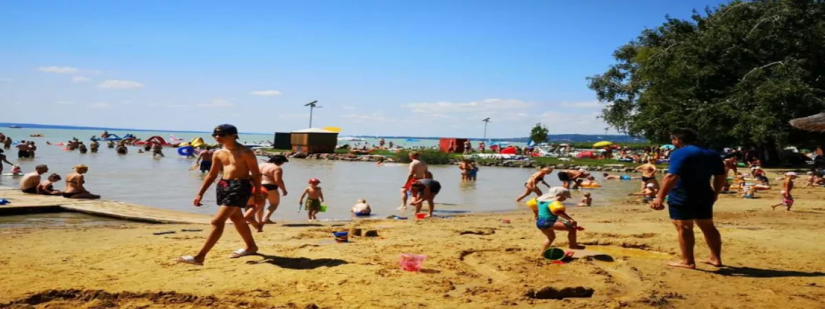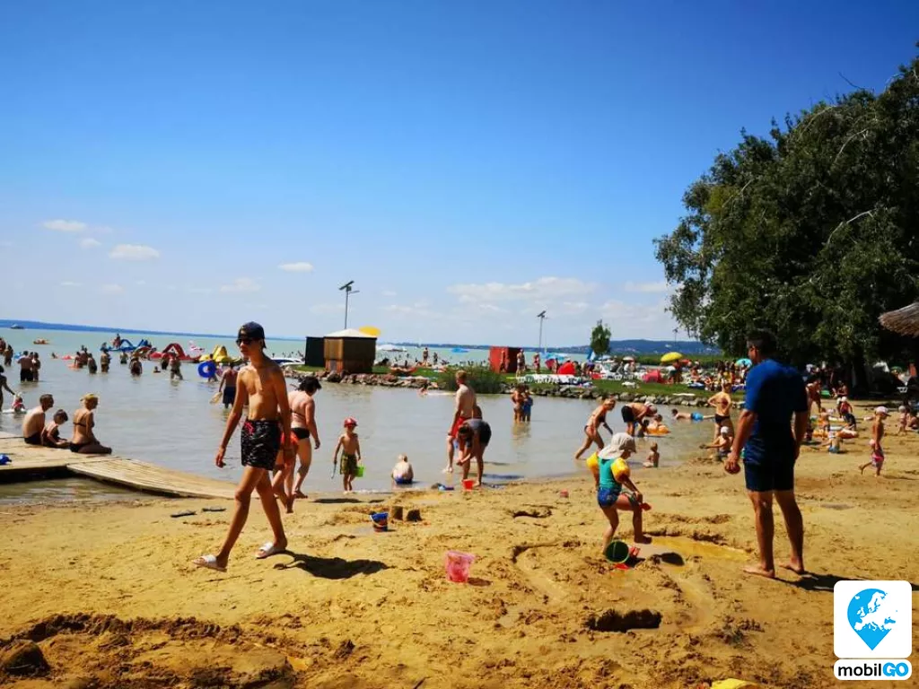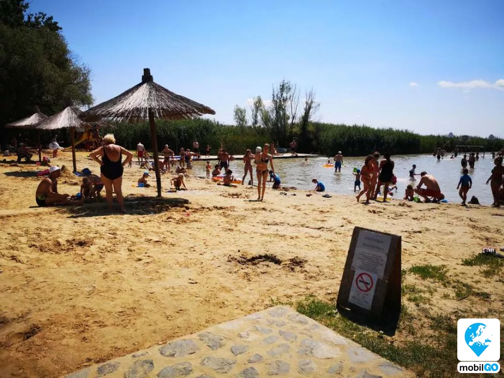 Községi Strandfürdő, mely a gyermekeket sekély, homokos patsztkasszal várja.