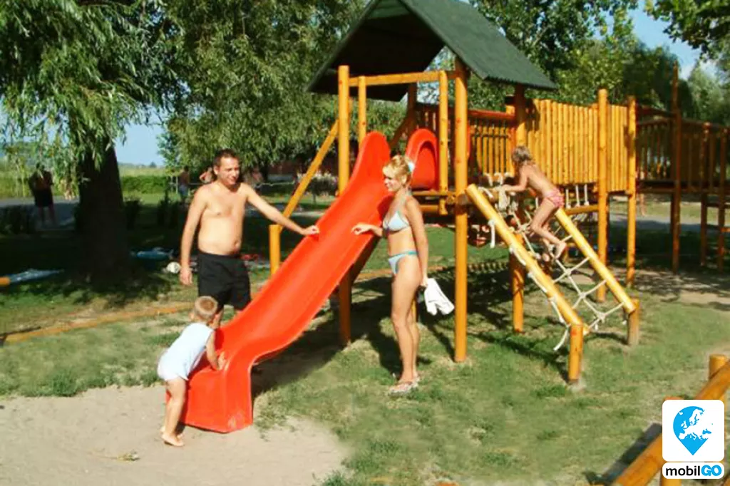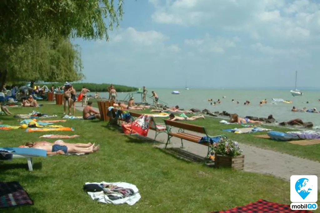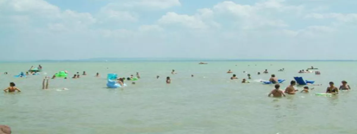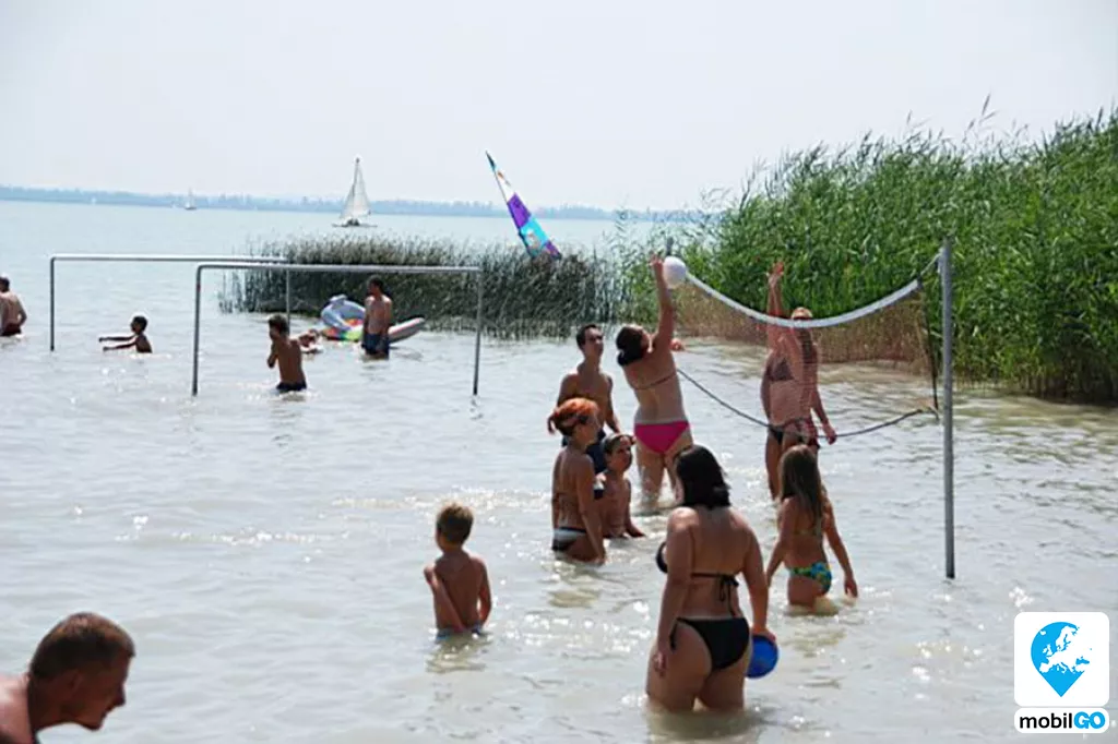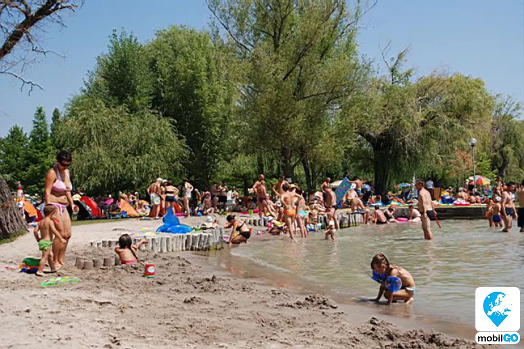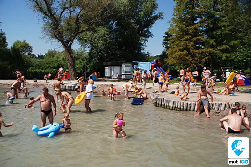 Strandolás, fürdőzés az Ábrahámhegyi gyermekbarát strandon: