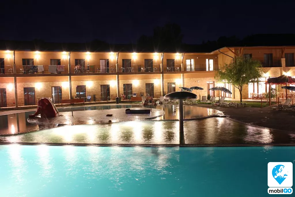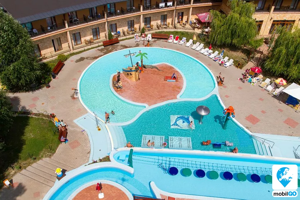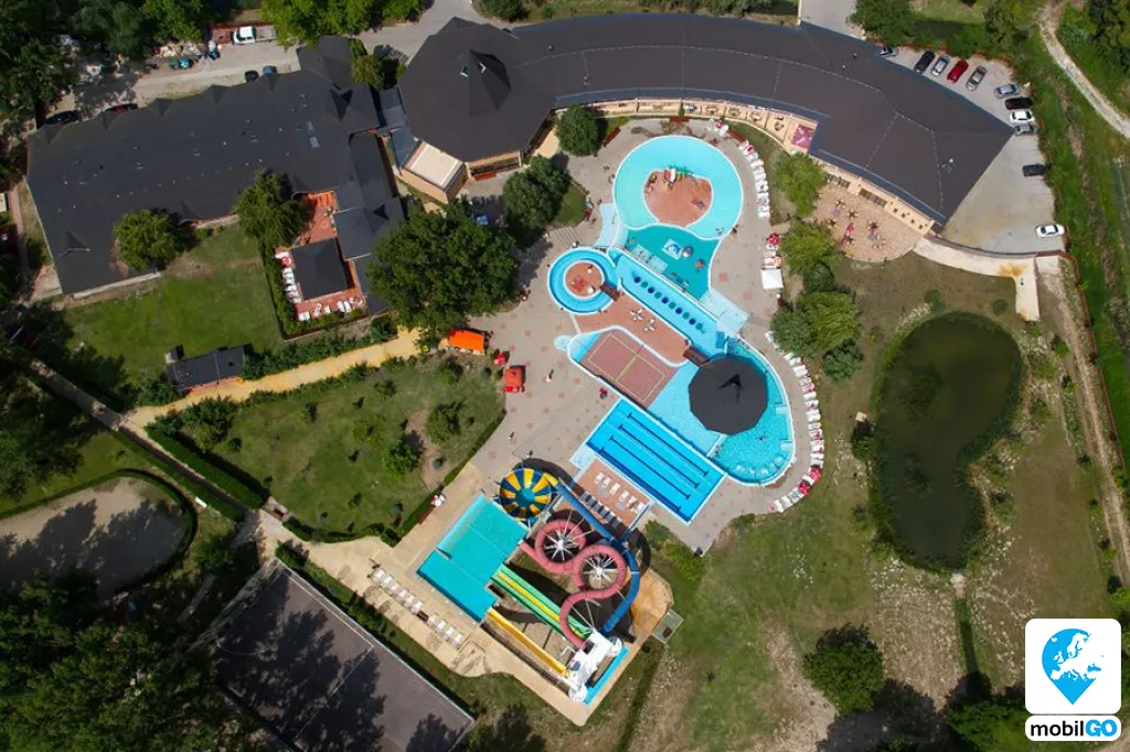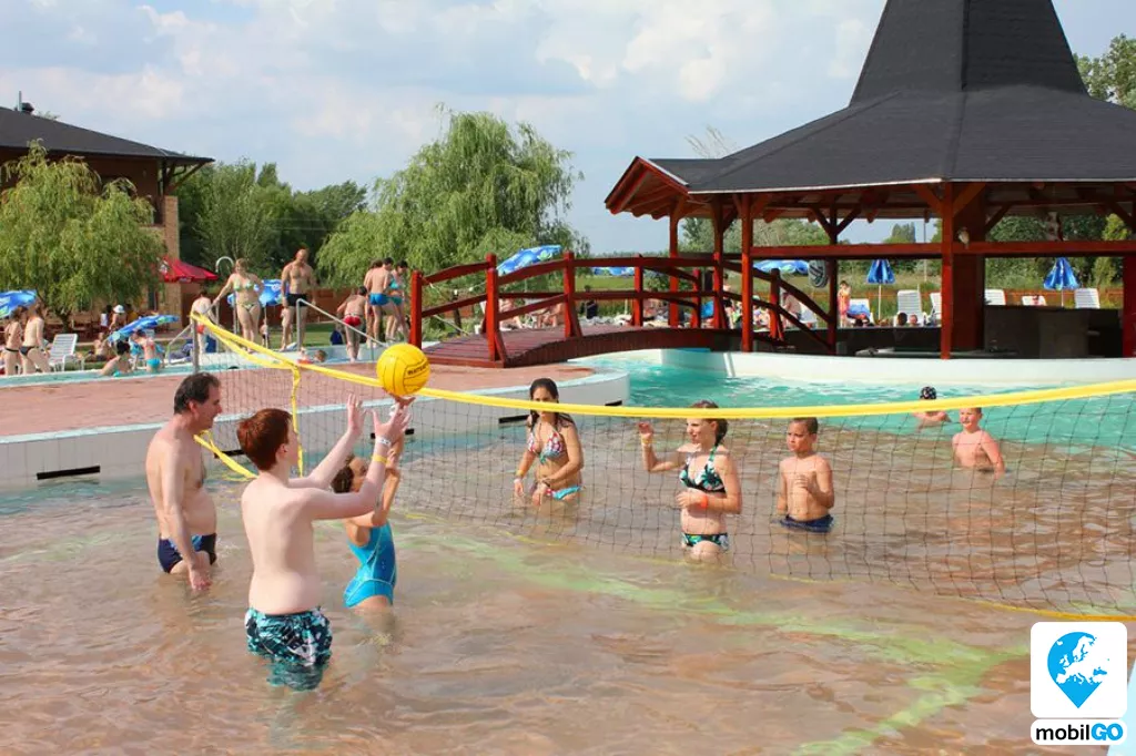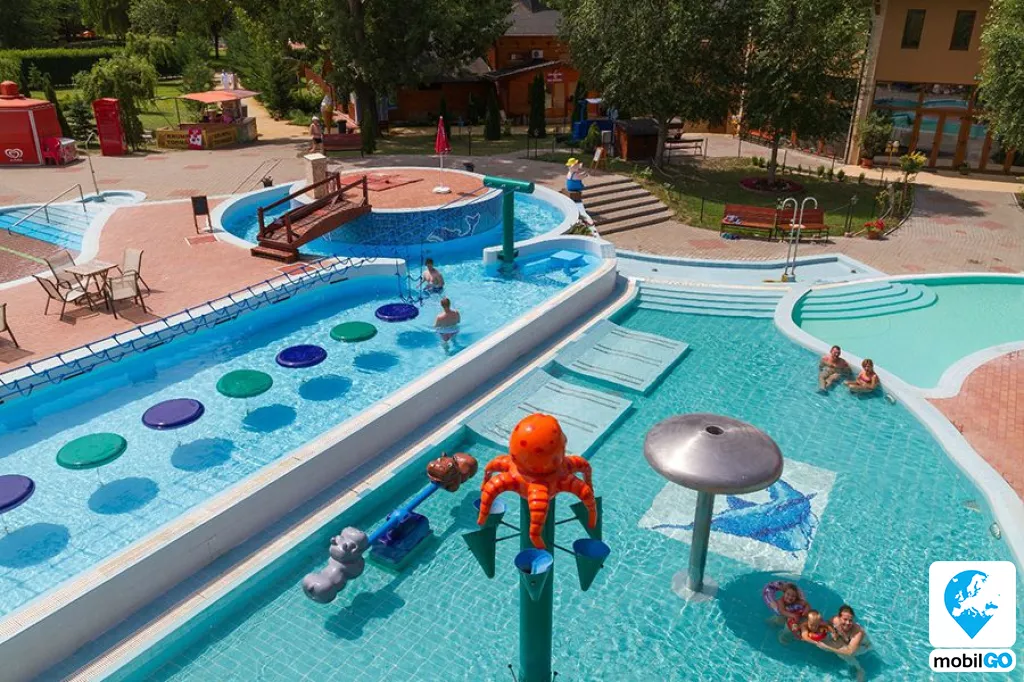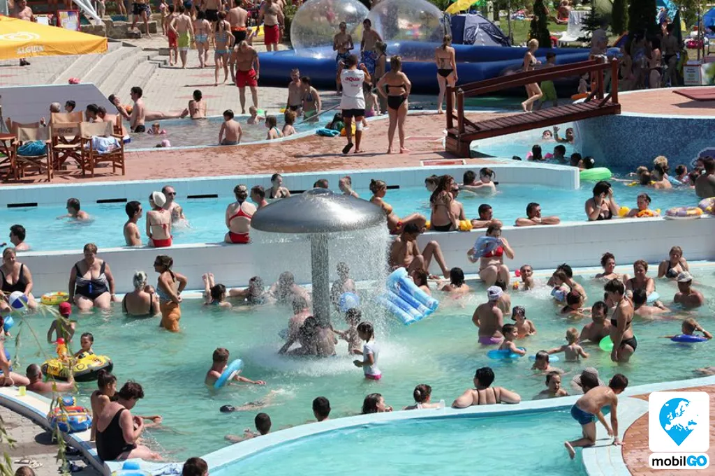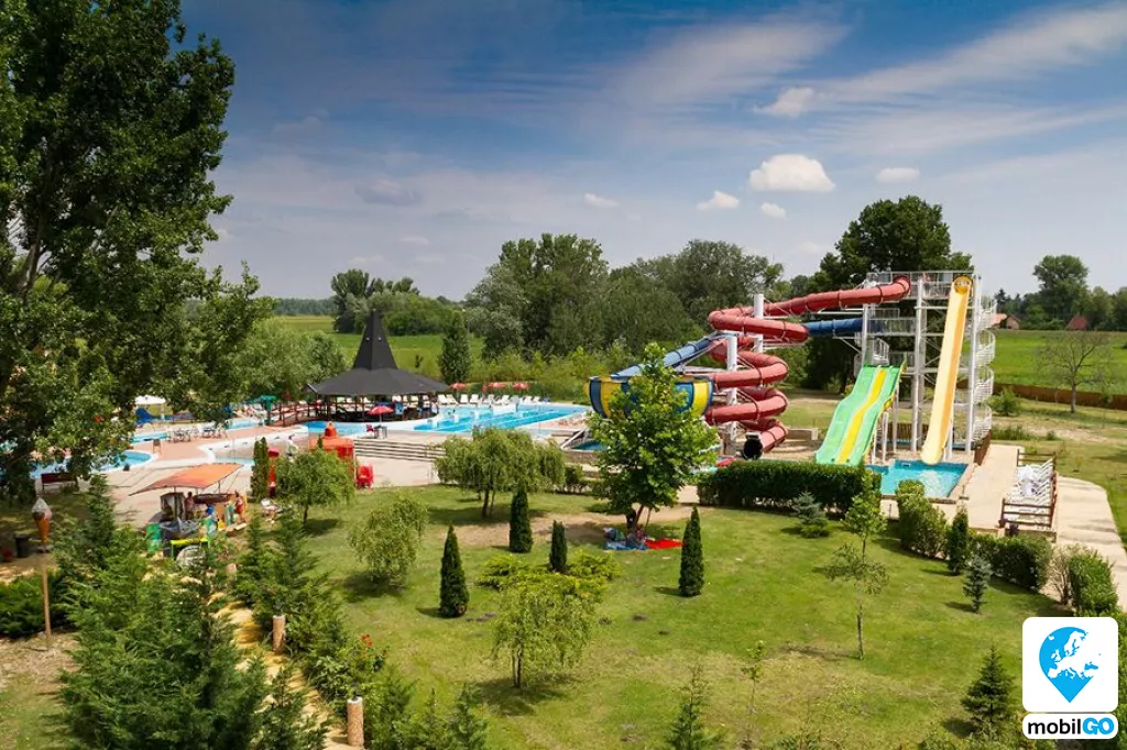 AQUA PARK (SZABADTÉRI STRAND) szabadtéri termálvizes élménymedence, termálvizes ülőmedence, gyógyvizes ülőmedence (nem üzemel), családi medence, sportmedence, úszómedence , sportpályák, játszótér, homokozó