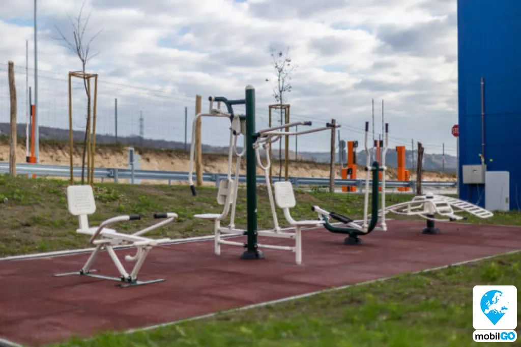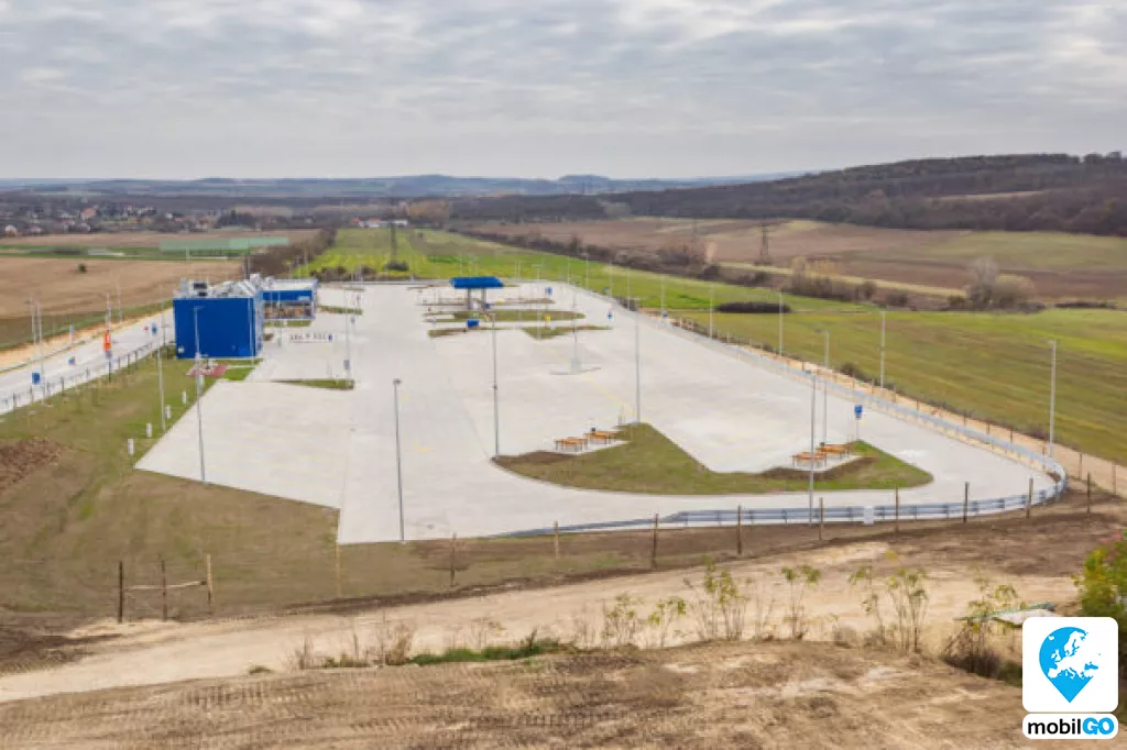 A modern, innovatív, minden igényt kielégítő kamionparkolóban 124 férőhely került kialakításra, mely alkalmas túlméretés kamionok fogadására is. Két parkolóhely lakóautóval érkező vendégeink részére fenntartott, áramvételezési és szennyvízürítési lehetőséggel. A környéken egyedülálló létesítmény az élőállatot szállító szerelvények részére vízvételi lehetőséget biztosít is.