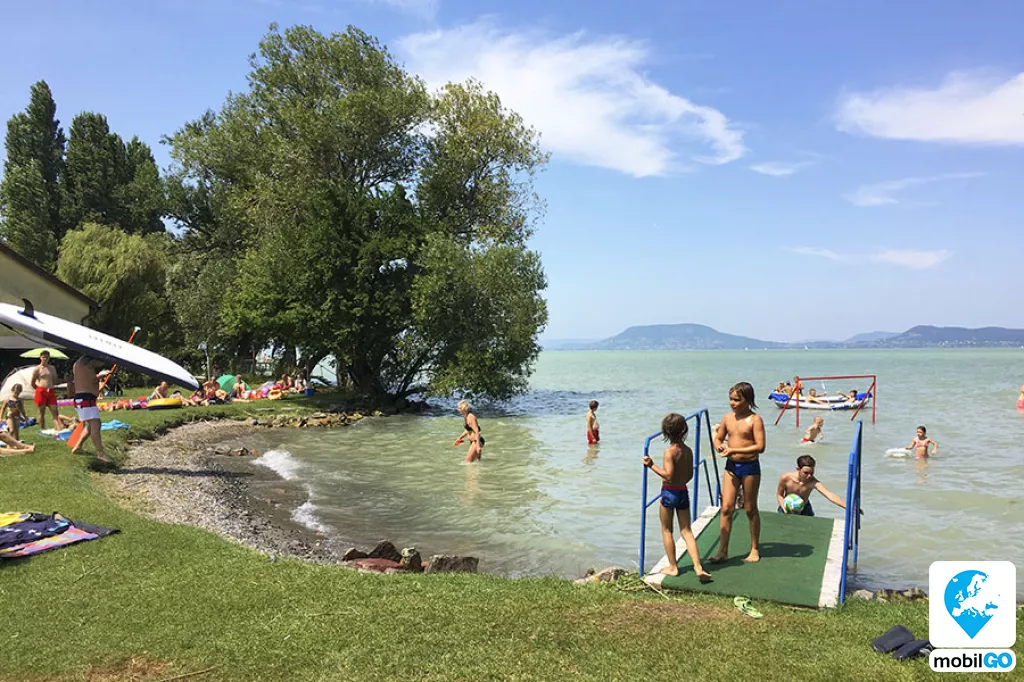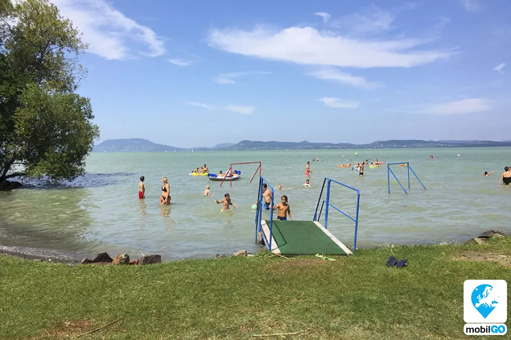A Balatonboglári központjától nyugatra fekvő Fiumei szabadstrandstrand füves területe nyugodt, csendes környezetet biztosít a strandoláshoz.