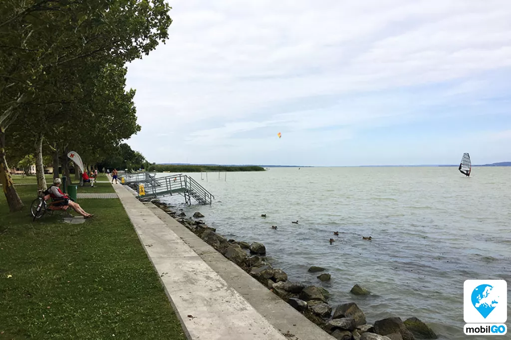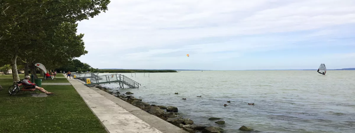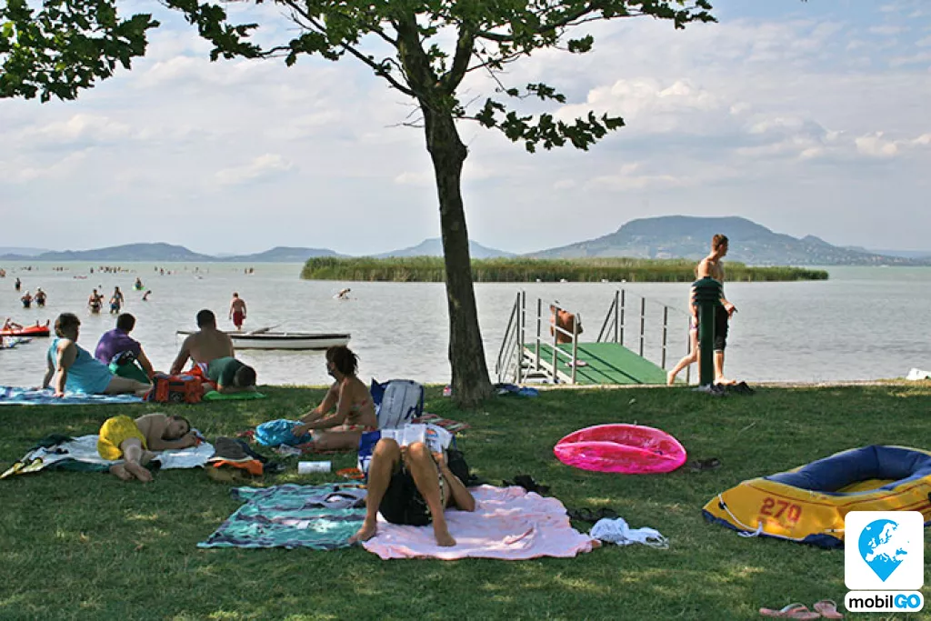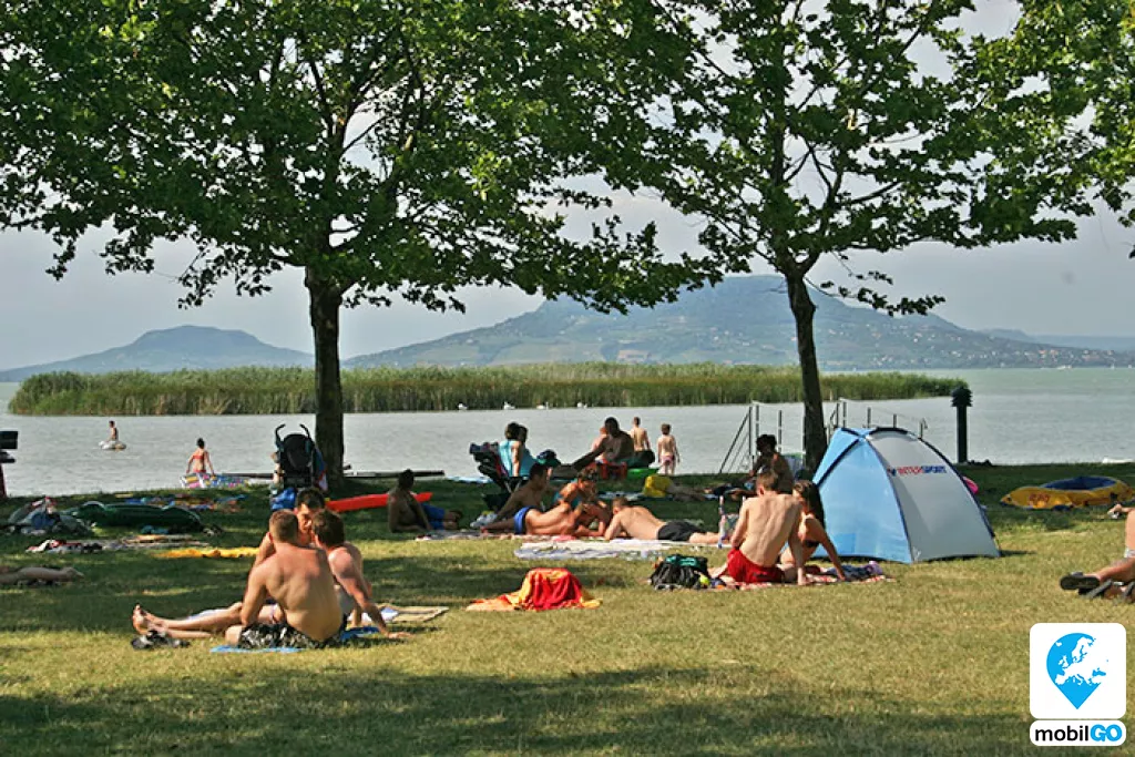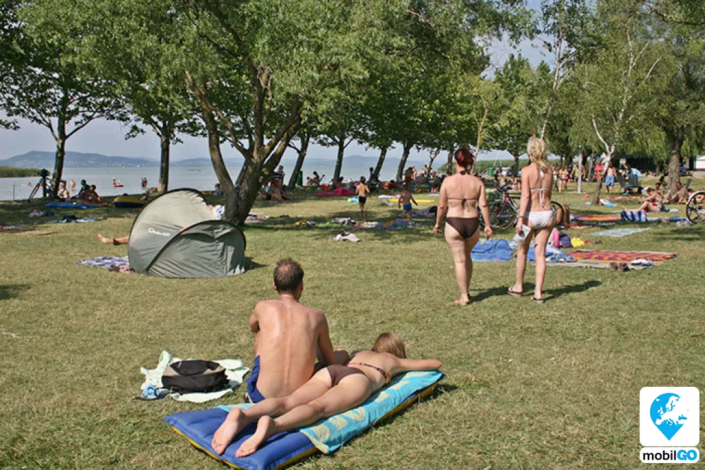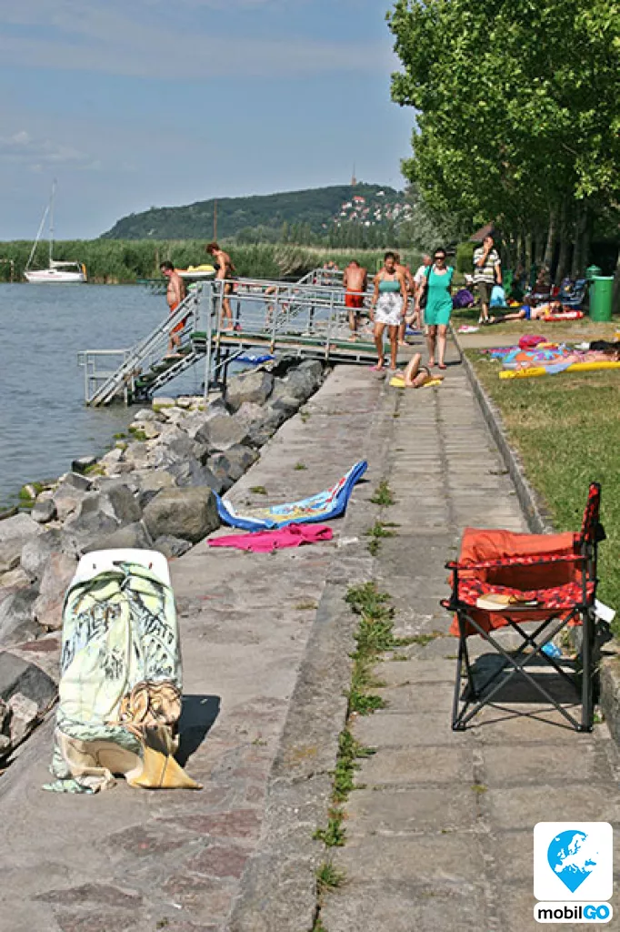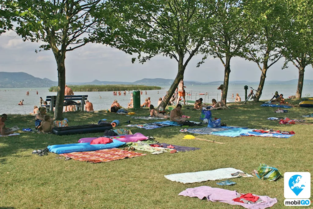 A strandot gondozott pázsit borítja, területén fák sorakoznak. Ahogy a település többi strandján, itt is ingyenesen lehet használni a bevizsgált és évente ellenőrzött játszótereket, öltözőket, WC-ket, hidegvizes zuhanyzókat. A büfék – falatozók változatos étel és ital kínálattal rendelkeznek (lángos, palacsinta, pizza, hamburger, hot-dog, egytál ételek, fagylalt, jégkrém, stb.)