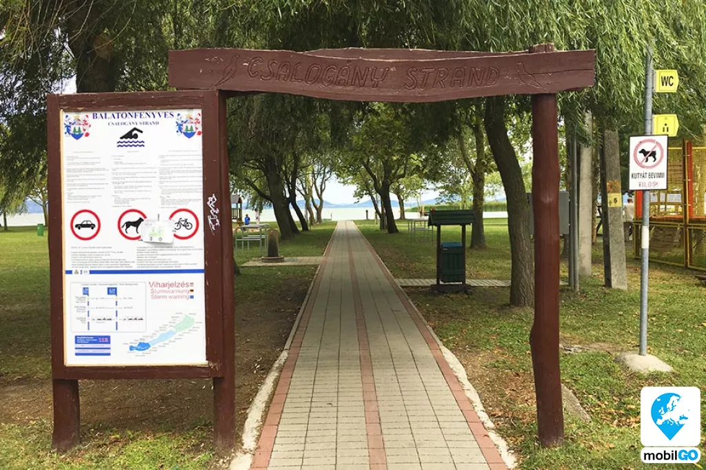 Balatonfenyves második legnagyobb, kb. 400 m hosszúságú szabad strandja a település észak-keleti részén, a Csalogány utcánál található.