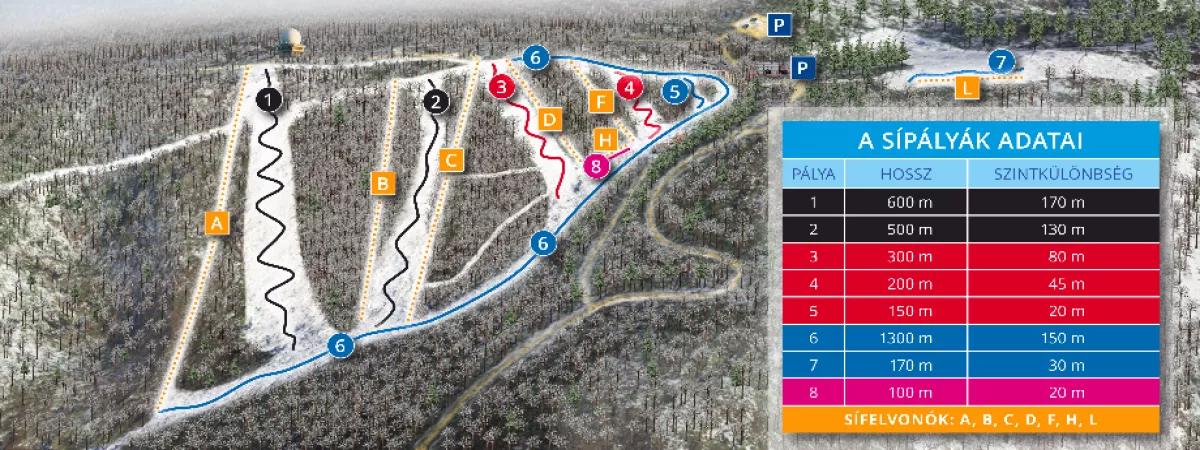 Észak-Magyarország egyik legszebb részén, a Bükki Nemzeti Parkban fekszik Bánkút síterepe. A Bánkút Sí Klub 7 húzóliftet üzemeltet, melyből 4 tányéros (ld. a sítérképen A, B, C, D jelzéssel), 3 pedig tolókaros (ld. F, L és H jelzéssel). A pályarendszer 6 különböző nehézségű lesikló pályából és 2 könnyű tanulópályából áll.
