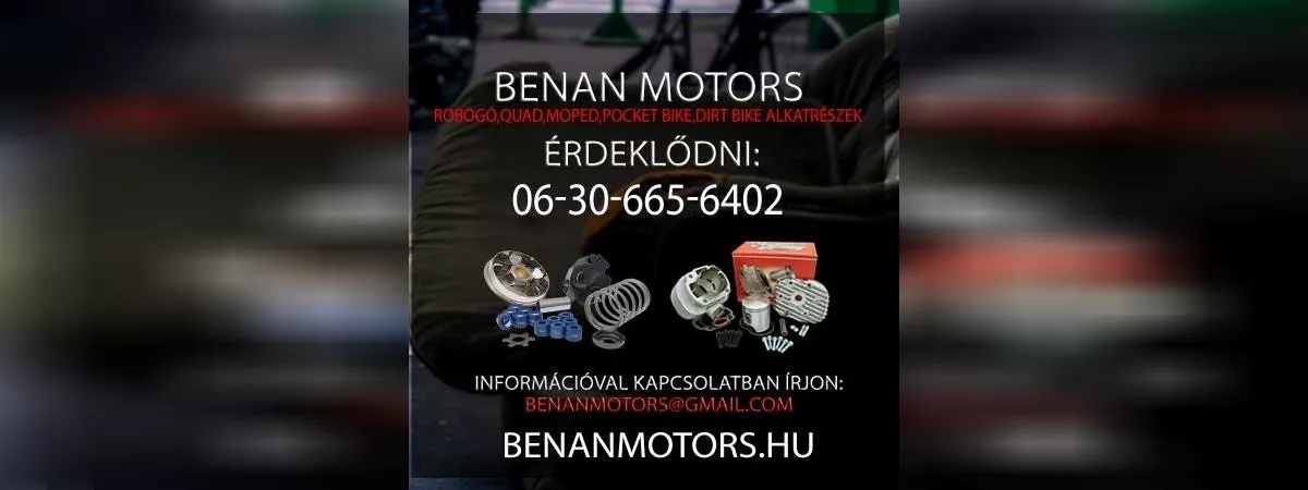 Üdvözlöm! Örülök, hogy betekintett hozzánk! Cégem robogó, quad, moped, pocket bike, dirt bike, cross motor alkatrészek forgalmazásával foglalkozik! Kérdéssel kapcsolatban keressen minket bátran.