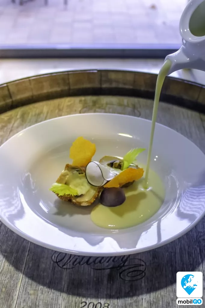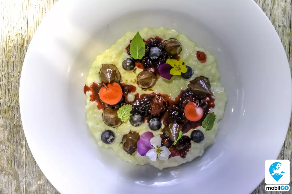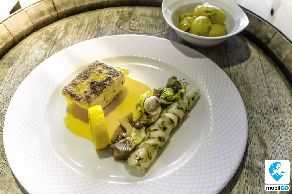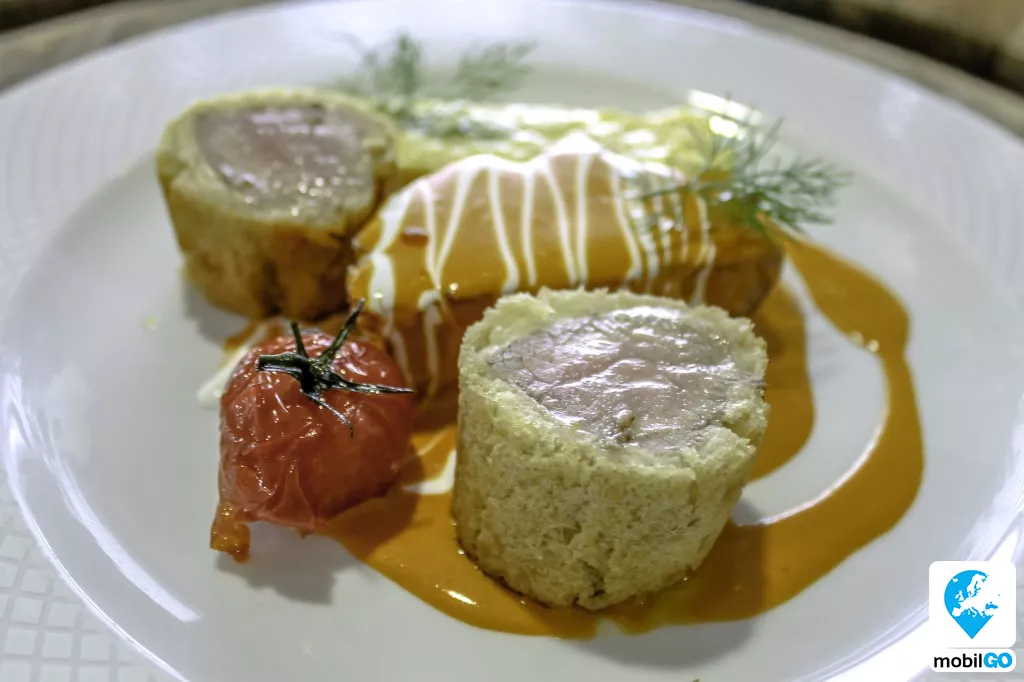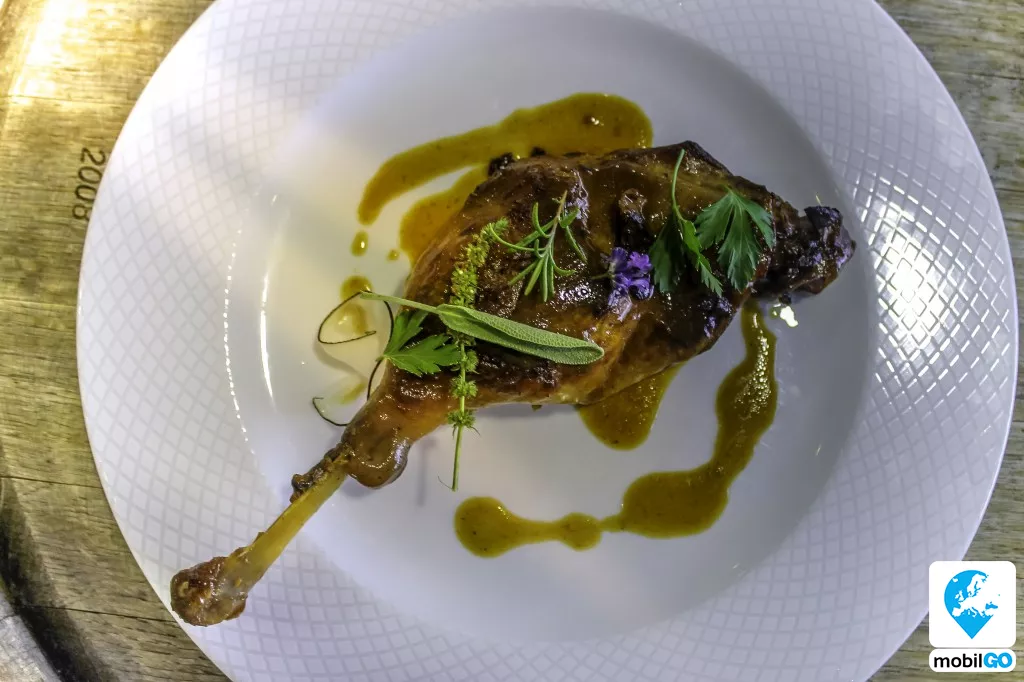 Konfitált kacsacomb narancsmártással, túrólepénnyel