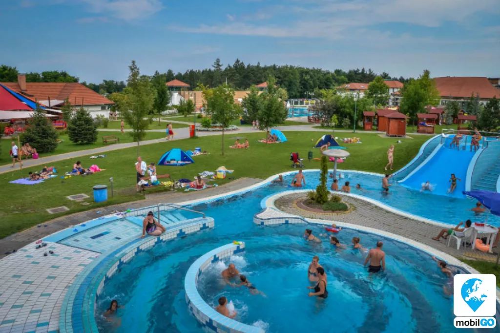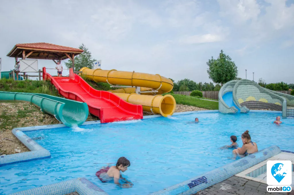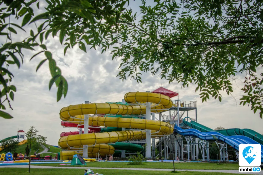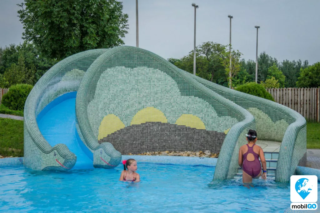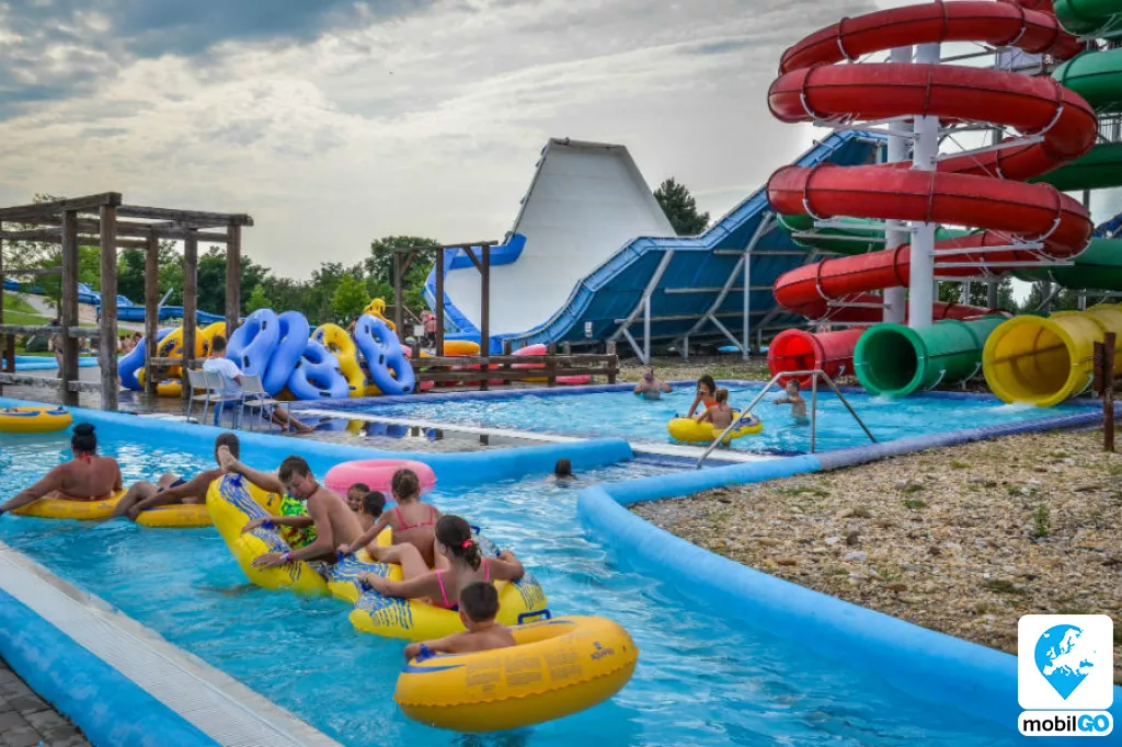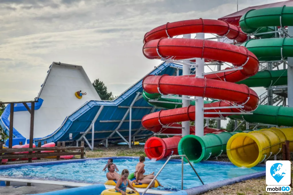 mellett 18 csúszda biztosítja a nyári élményeket.