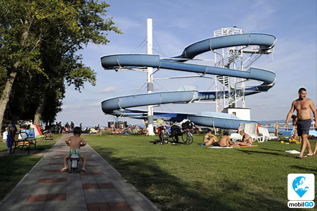 A nagy füves területtel rendelkező Császtai strand Révfülöp nyugati részén várja a fürdőzőket.