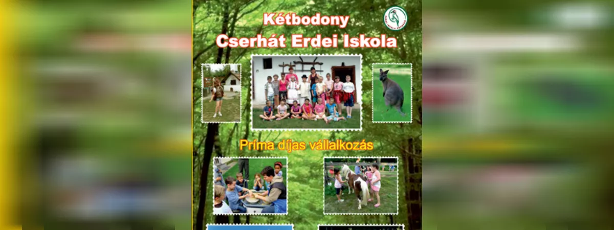 Cserhát Erdei Iskola Kétbodony! Príma díjas vállalkozás! ! Osztálykirándulás, táborozás, erdei iskola és óvoda egész éveben! Mini Zoo, horgásztó, lovaglás! Tisztelt Érdeklődő! Engedje meg, hogy bemutatkozzam: Holes Imréné vagyok, a kétbodonyi Erdei Iskola vezetője. 15 éve dolgozom azon, hogy az erdei iskola, mint tanulásszervezési egység betöltse feladatát, a hozzánk érkező felkészült pedagógusok munkáját úgy tudjuk segíteni, hogy azok elérjék oktatási céljaikat. Sok szállásadó van ma már, lehet válogatni köztük, ám sok a kényszervállalkozó, aki egy- egy olcsón megvett vagy megörökölt épületet kinevez erdei iskolának és így akarja azt hasznosítani. Többnyire fogalma sincs róla, hogy az erdei iskola közel nem csak szállást és étkezést jelent, hanem olyan környezeti egységet ahol 5 napig egyetlen pillanatra sem unatkozik a tanuló, hanem játszva megtapasztalva szerez sok- sok ismeretet. Vállalkozásunk elsők között biztosított erdei iskolai programokat, infrastruktúránkat évről évre fejlesztjük, melynek során mára saját tájházunkban fogadjuk az évi több ezer látogatót. Itt a honismeret nem tantárgy, hanem csupa mese, csupa játék, az élő népviselet csupa szín és virág. Kipróbálhatnak régi étel és sütemény recepteket hozzáértő vezetők segítségével. Állatkertünk láttán kinyílnak a szívek és a csodálkozó szemek, az állatok közelsége pedig csak a jót hozza ki mindenkiből Mennyivel egyszerűbb így itt egy környezetismeret óra, mint az iskola padban, és micsoda élmény lóra ülni vagy hintóba szállni. 60 éve itt halad a Kék túra útvonala - kitárul a természet minden szépsége, szakvezető vezeti rá a gyermekcsoportokat, hogyan ismerjük, védjük a növény- és állatvilágot, mitől természetvédő a vadász, ha lelövi az állatokat - ezer kérdésre ezer választ kapnak a gyerekek. A tavak, patakok környékét biológiai tanösvény teszi megismerhetővé és szerethetővé. Környezetvédelmi tudásunkkal hozzá tudunk járulni ahhoz, hogy gyermekként védjék a természetet, felnőttként pedig környezettudatos döntéseket tudjanak majd hozni magánéletükben vagy a társadalomra nézve. Vannak mára már teljesen elfeledett szakmák, ilyen például a bognár. Ez is megismerhető egy több mint 100 éves bognárműhely és a mester segítségével. A 2011- es év újonnan megvalósult létesítménye a 7 hektáros halastó, ahol a vízivilág megismerésén túl lehetőség nyílik csónakázásra, vízíbiciklizésre is. Szabadidő parkunkban vízforgatós fürdőmedencénk tengeri sós vízzel várja a hűsölni vágyókat. Évezredek tanúi a környék várai: Nógrád, Drégely (melynek hőseit Szondy két apródjában Arany János is megénekelte) a Szandai vár andezitoszlopos várhegye, valamint a Hollókői vár a Világörökséget képező Ófaluval együtt felejthetetlen élményt ad. Az itt szerzett ismeretek felülírják a legjobb történelem órákat is. Kétbodonyban a Rákóczi csata színhelyén mécsest gyújtani vagy együtt énekelni a Himnuszt szintén örök élmény. Ipolytarnóc maga a csoda. 20 millió éves leleteivel 4D mozijával abszolút elképzelhetővé válik, milyen is volt a Pannon tenger világa. Fontos, hogy a gyermekcsoportok belekóstoljanak a munka világába is, az alkotás örömét biztosítják a sokszínű kézműves foglalkozásaink. Ha egy erdei iskolai helyszínt vagy táborhelyet választ egy pedagógus, biztosítékot szeretne, hogy azt kapja, amit ígérnek. Biztonságos környezetet, egészségügyi szempontból helyben szakembert, megfelelő erdei iskolai programokat. A mi biztosítékaink:•15 éves tapasztalat, •minősített programok, •90 program modul, melyek közül szakirányosan választhat a gyermekek életkorának és felkészültségének megfelelőt, •elhivatott dolgozóink, akik nem csak vallják, hanem teszik is „mindent a gyermekekért” jelszóval munkájukat. Ezt a munkát ismerte el 2011- ben az „Év vállalkozója” címmel a Vállalkozók Országos Szövetsége.