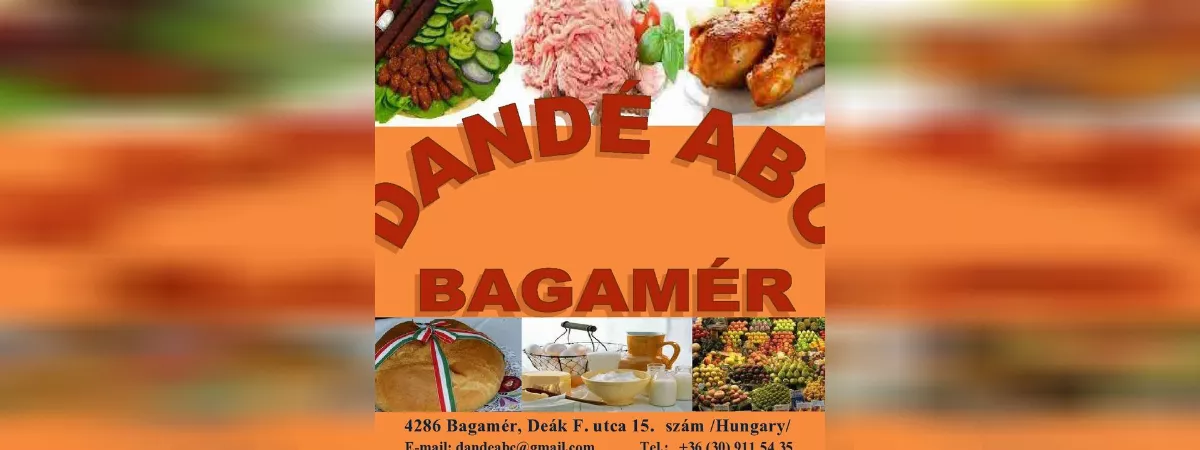 Dandé ABC4286 BagamérDeák Ferenc utca 15. szám Élelmiszerüzlet Nyitvatartási idő:Hétfő- Vasárnap:06:00- 18:00