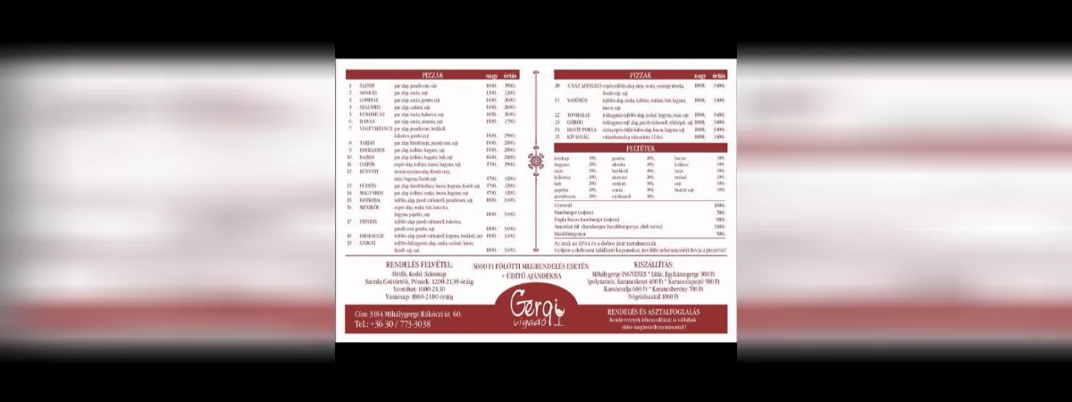 Étel - Ital / Pizzéria, Étel házhozszállítás