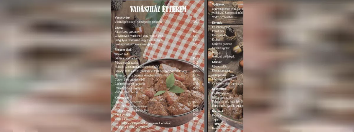 Szeretettel várjuk vendégeinket éttermünkben és panziónkban. Mindenki talál kedvére valót változatos étlapunkon. Hétköznap menü kapható. Kiszállítással is. Éttermünket 2015 dec. 6- án nyitottuk meg itt, a Vértes és a Bakony találkozásánál fekvő kis településen…Császáron. Étlapunkon a hagyományos magyar konyha ételei mellett a kiváló vadakból készült ételeket is megtalálják vendégeink. A kávéház és az étterem együttesen maximálisan 100- 130 fő befogadására is alkalmas, így nagyobb társaságok, esküvők, családi rendezvények (születésnap, névnap, babazsúr) , és céges rendezvények számára is ideális helyszínt nyújthat.