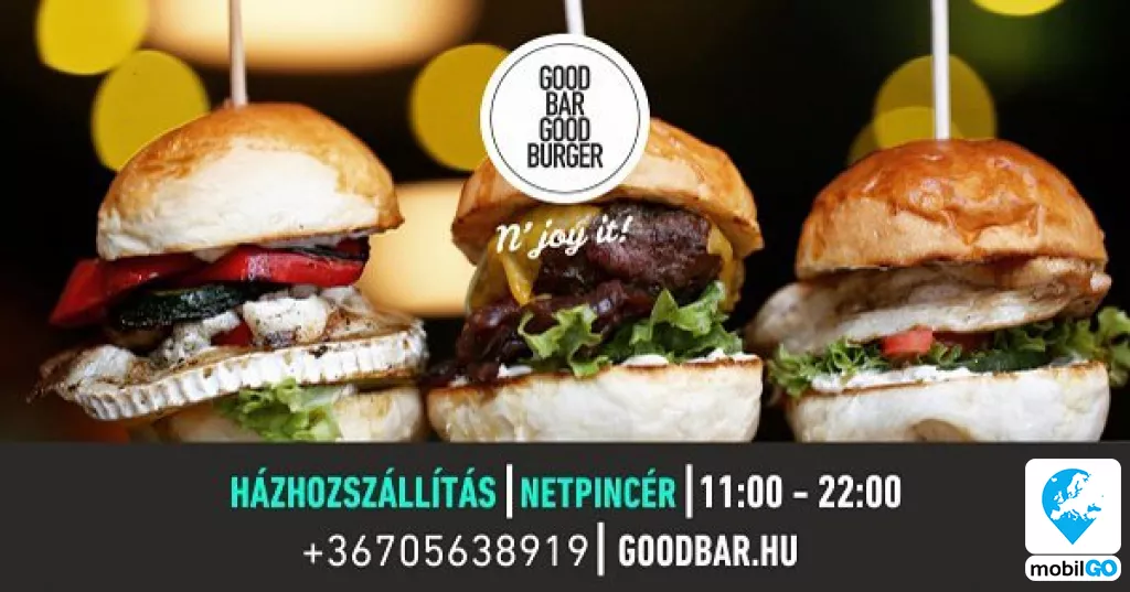Mi a GoodBar? Egy hely, ahol jó lenni. Bisztró, bár, kávéház, étterem, lokál. Sok arca van, mint egy izgalmas nőnek. A reggel puha és nyugodt, prémium kávé vár mindenkit. Napközben gourmet burgerek nyolcfajta húsból, házi szószokkal, többféle köretettel és friss salátával. Az este pedig? Törnek a fények, a prosecco jéghideg, a zene mindig pontos. Nyitva: hétfő-vasárnap: 11:00-23:30 Üzletvezető: Csongor Dániel