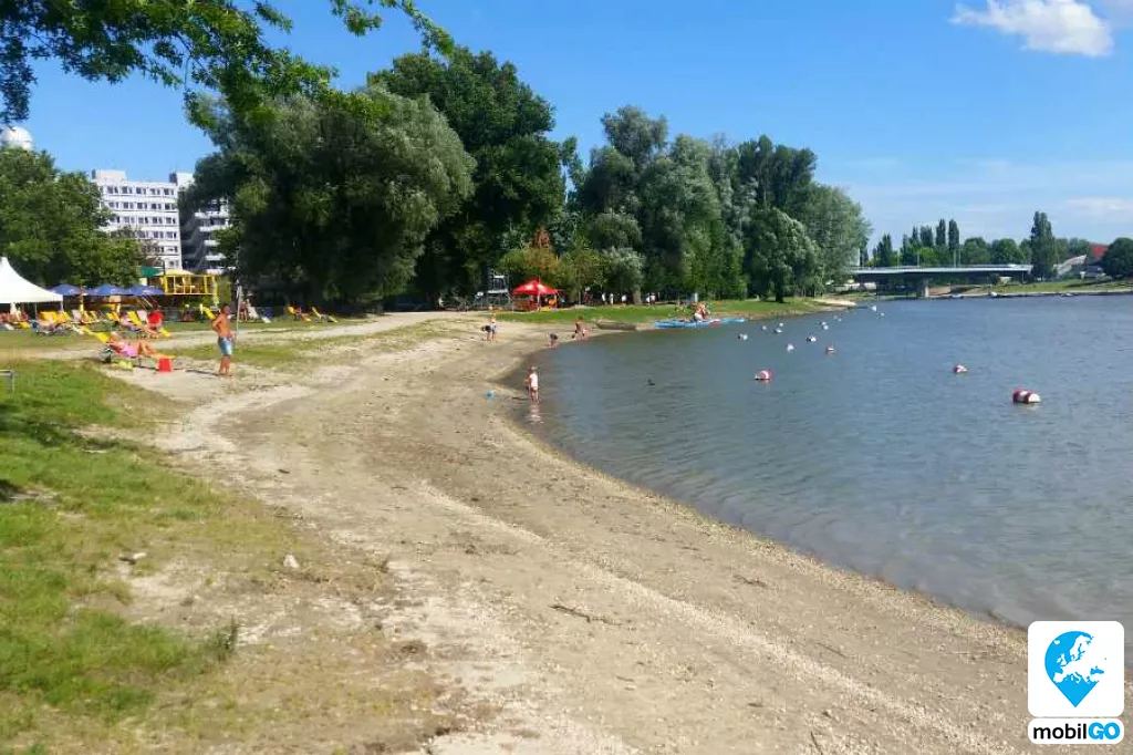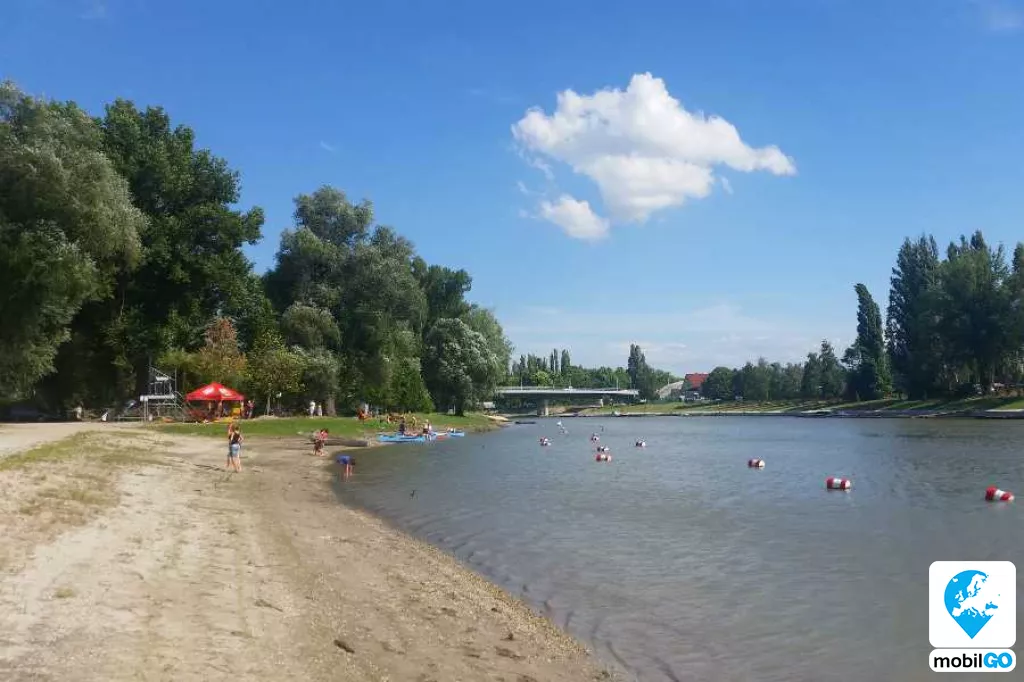 A győri Aranypart szabadstrand a Mosoni-Duna és annak holtága között kínál ingyenes strandolási lehetőséget.