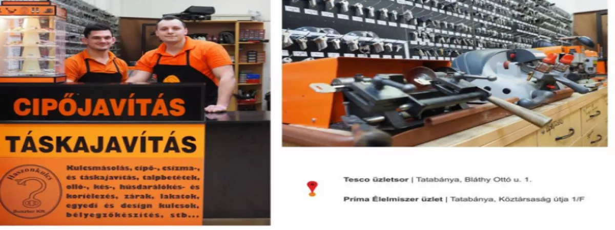 Kulcsmásolás, cipő, csizma és táskajavítás, bélyegzőkészítés, zippzár javítás és csere, zárak, lakatok, kések, ajándéktárgyak, gravírozás, stb....