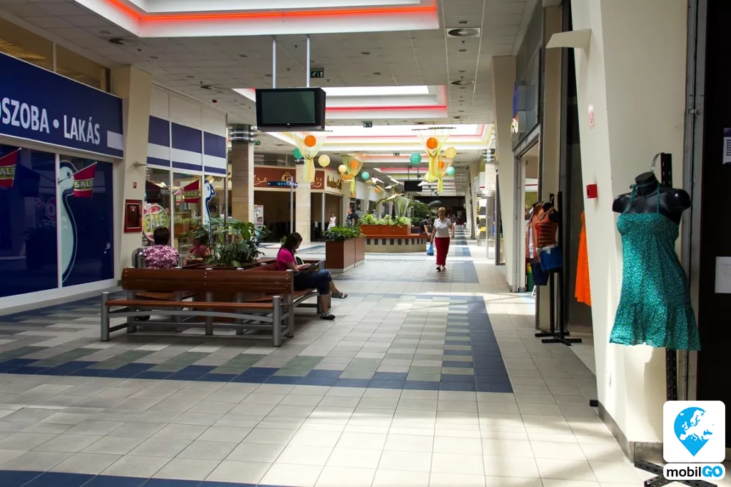 Bevásárlóközpontunk épülete Nagykanizsa belvárosának közelében, az Autóbusz-állomás és a Vásárcsarnok közvetlen szomszédságában épült fel, és két bejáraton át megközelítheto. A fobejáratról nyíló folyosó központi részén kialakított pihenoövezettol jobbra a szupermarket, balra a mozi és éttermi udvar található. Közöttük, a folyosó északi és déli oldalán helyezkednek el üzleteink.