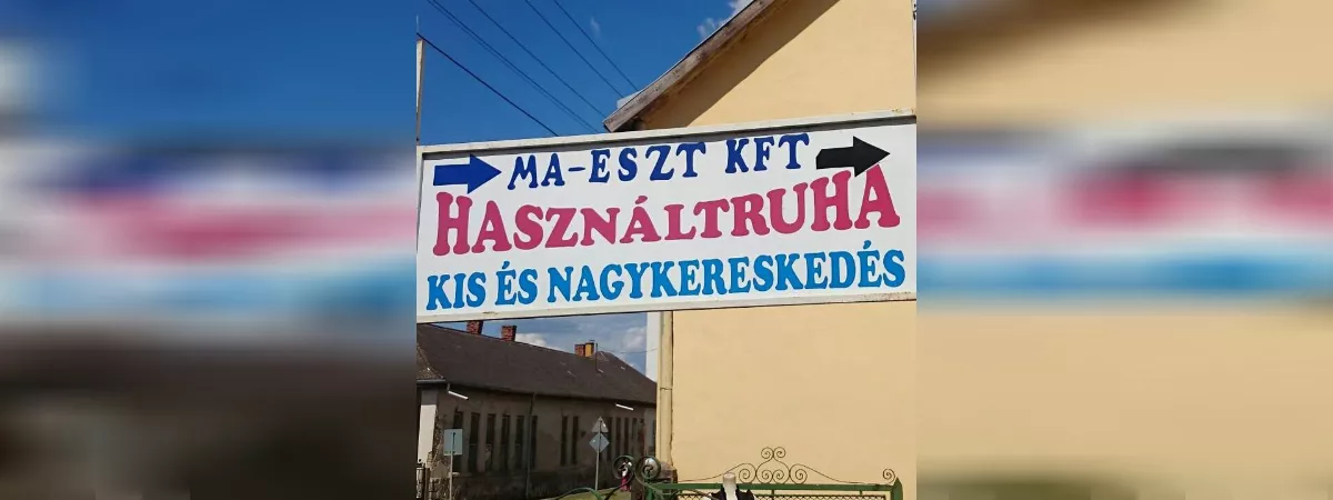 MA- ESZT KFT Használt ruha Kis és Nagykereskedés. Nyírmeggyes Bajcsy Zs utca. 8 a fagyizó mellettParkolás az udvarban. Boltunkban széleskörű választék várja önt és a családját. - Ruhák női/férfi/gyerek:- Alkalmi ruhák- Munkásruhák- Pólók- Ingek- Blúzok- Toppok- Melegítők- Öltönyök- Zakók- Kabátok- Fürdőruhák- Fehérneműk- Bikinik- Köntösök- Nadrágok:- Farmernadrágok- Rövidnadrágok- Melegítőnadrágok- Szoknyák- TérdnadrágokCipők:- Edzőcipők- Alkalmi cipők- Szandálok- Papucsok- Gyerekcipők- Magassarkú cipők- Bakancsok- CsizmákLakástextilek:- Ágynemű- Ágyneműhuzatok- Lepedők- Ágytakarók- Párnák/Díszpárnák- Függönyök több méretben- Sötétítők- TörölközőkKiegészítők:- Nadrágszíjak- Karkötők- Gyűrűk- Nyakláncok- Fülbevalók- HajráfokTáskák:- Alkalmi táskák- Pénztárcák- GyerektáskákJátékokKalapok/SapkákTuris Ruhák Felnőtt/Gyerek