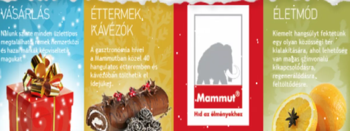 Név: Mammut Bevásárló- és Szórakoztató KözpontNyitás éve: 1998 augusztus 28. (Mammut II. 2001. szeptember 28.) Terület: Összesen 105 ezer négyzetméter parkolókkal, közterületekkel, raktárakkal, irodákkal, együtt, ebbol a teljes üzleti terület 56 ezer m2. Üzletek száma: 330 üzlet Parkolók száma: 1200 parkolóhely