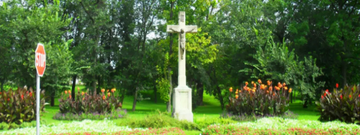 Feszület felirata: Szerencsés megmenekülésünk emlékére 1859.