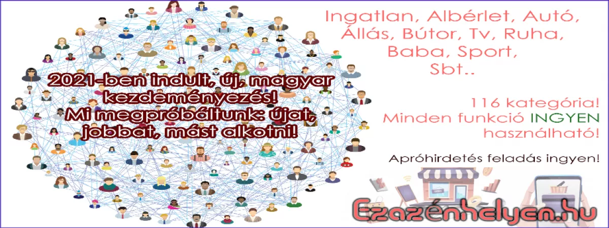 Nálunk minden ingyenes! Nem kell fizetni semmiért! Nincs előre sorolási lehetőség, nincs kiemelési lehetőség, nincs semmi amivel valaki a pénzéért előrébb kerülhet. A mi apróhirdetési oldalunk kizárólag a banneres hirdetéseken alapszik.