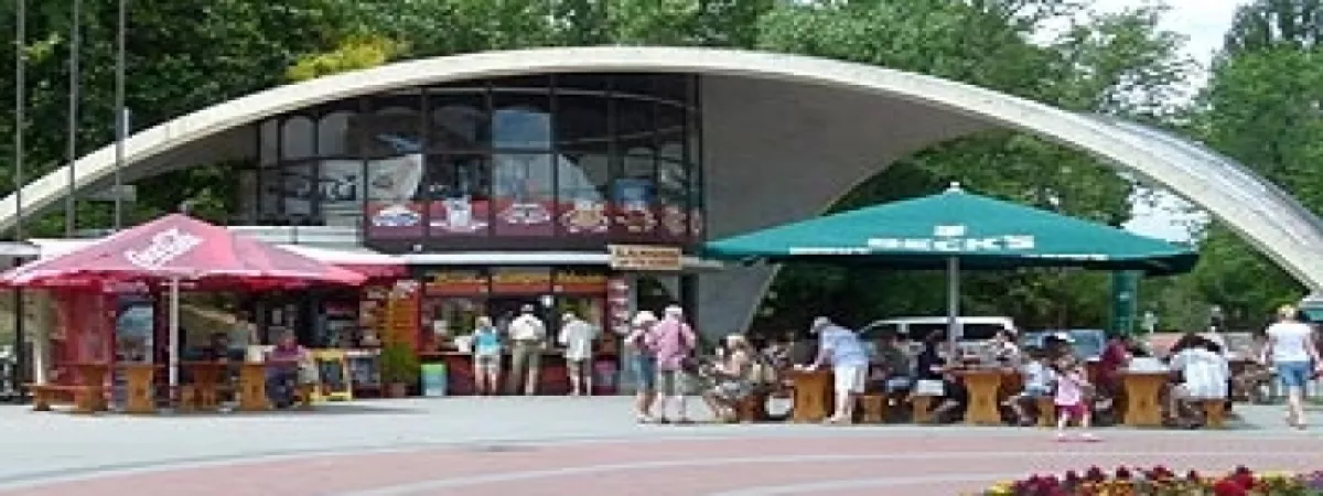 A tihanyi Móló Büfé a hajóállomás fél kagylót formázó központi épületének földszintjét foglalja el...