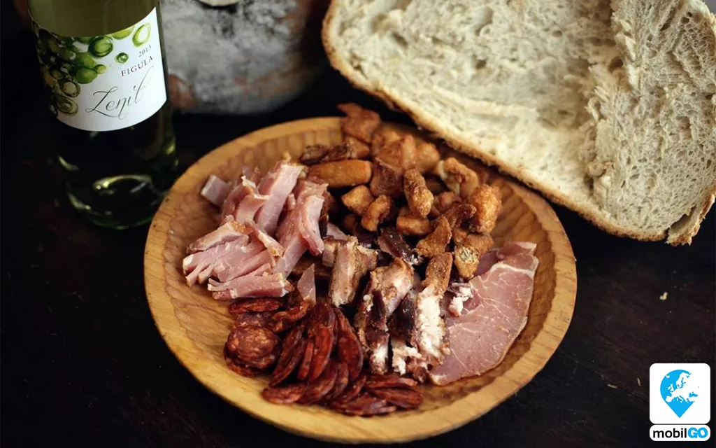 Itt senki nem siet, hanem kóstolgat és beszélget. Ha egy gyors bevásárlást terveztél, nem fog összejönni. Ha viszont van időd és kíváncsi vagy, hogy kerül Balatonkenesére egy ilyen hely, nemcsak a családról fogsz mindet megtudni, hanem az itt kapható termékekről is, meg a azokról, akik készítik őket. A kínálat nagy része ugyanis a bőven vett régióból származik, a húsok kivételével. Ha esetleg bevásárlólistával érkeztél, el is felejtheted, a szarvasszalámi, a mangalicakolbász vagy a Pörc saját készítésű sült és göngyölt szalonnája elég nagy kísértést fog jelenteni az újratervezéshez. A saját termékek – sült császár, füstölt csülök, pörc, stb. - ma is a dédapa receptjei alapján készülnek, és igen, egy megsárgult, régi füzetet kell elképzelni...