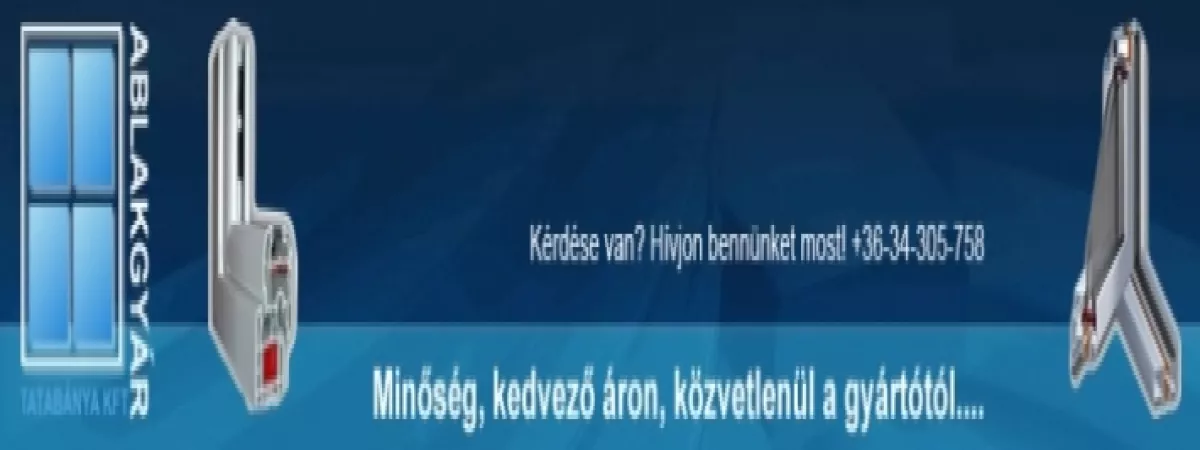 Az Ablakgyár Tatabánya Kft. nyílászáró gyártóként közel 10 éve szolgálja mind a lakosság, mind pedig vállalkozások (cégek, lakásszövetkezetek, társasházak, közületek) igényeit. Nyílászáróinkat kiváló német minőségű profilrendszerből gyártjuk, igény szerint két-, illetve háromrétegű üveggel. Jelenleg közel 1000 m2-es gyártósoron megy a termelés!