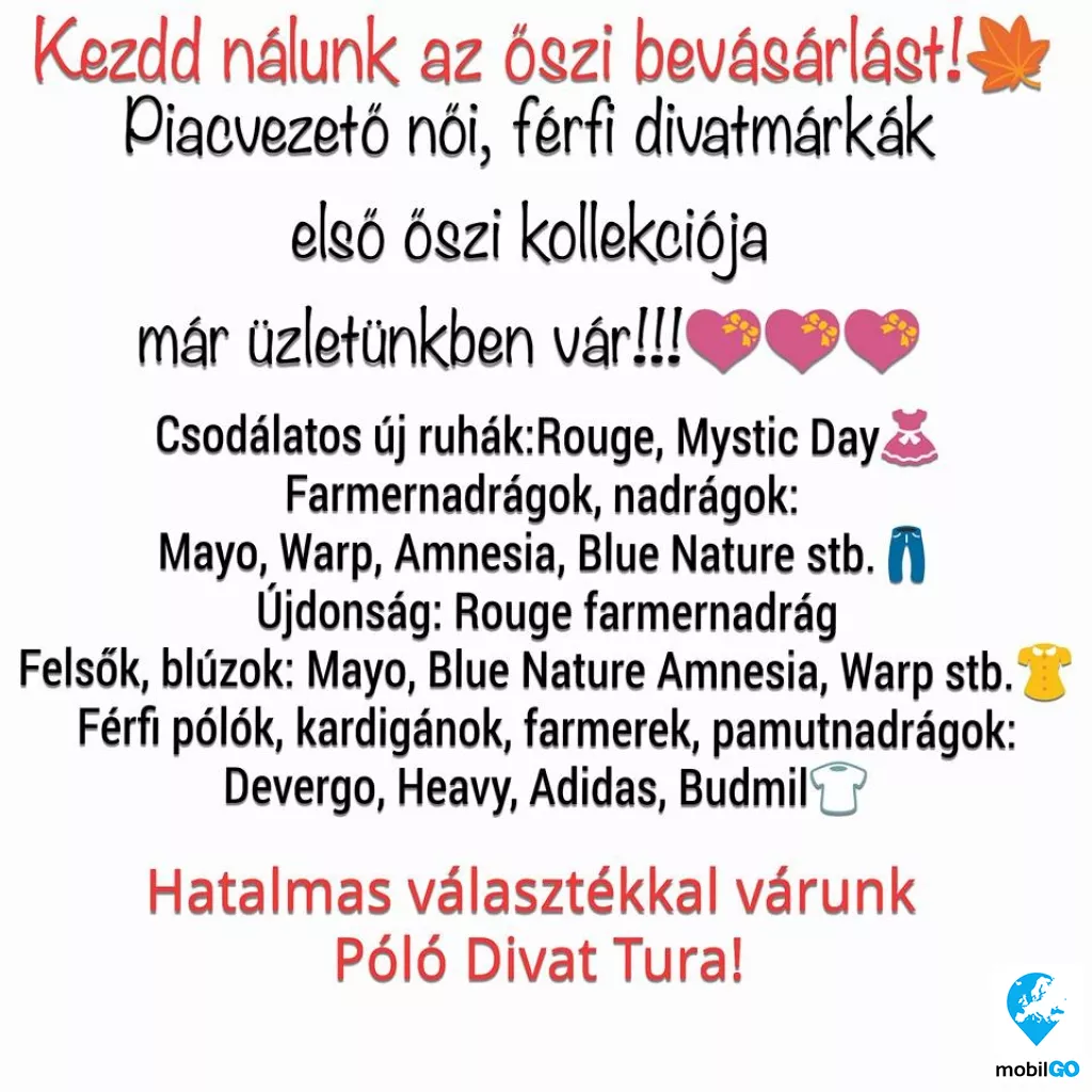 Márkás, trendi, alkalmi és sportos, női-férfi felsőruházat, kiegészítők.
