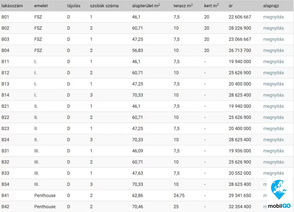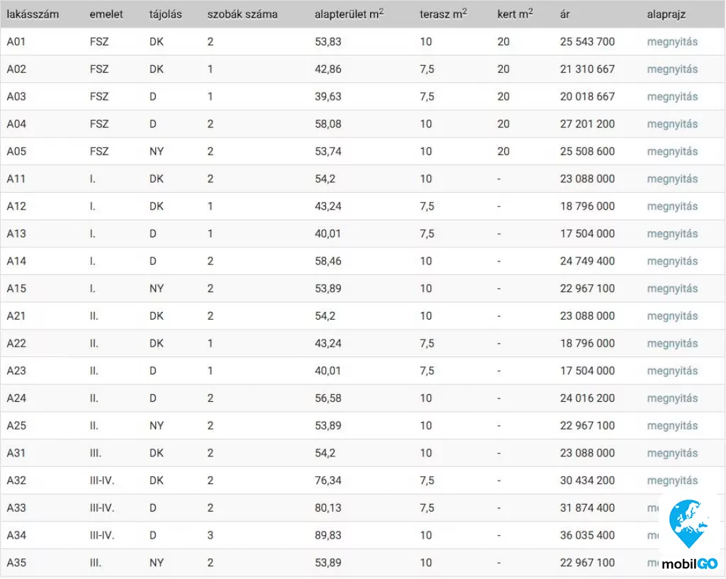 Lakásaink számos méretben, szobaszámban, teraszmérettel és kerttel megtalálhatóak, így kiváló választás