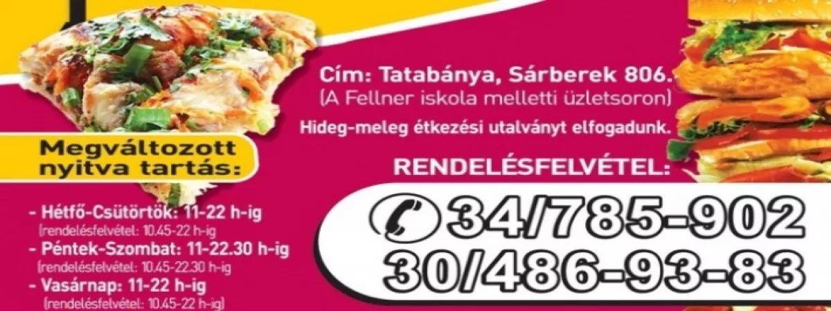 Hideg-meleg étkezési utalványokat elfogadunk, üzletünk Erzsébet utalvány és OTP SZÉP Kártya elfogadóhely. Tatabánya belterületén ingyenes a kiszállításunk, egyéb címeknél érdeklődj dicspécserünknél. Aktuális akcióinkat érdemes mindig követni. Bankártyát is elfogadunk. Rendeléskor a fizetési módot minden esetben jelezni kell a diszpécsernek, különben csak készpénzt áll módunkban elfogadni. Jó étvágyat!