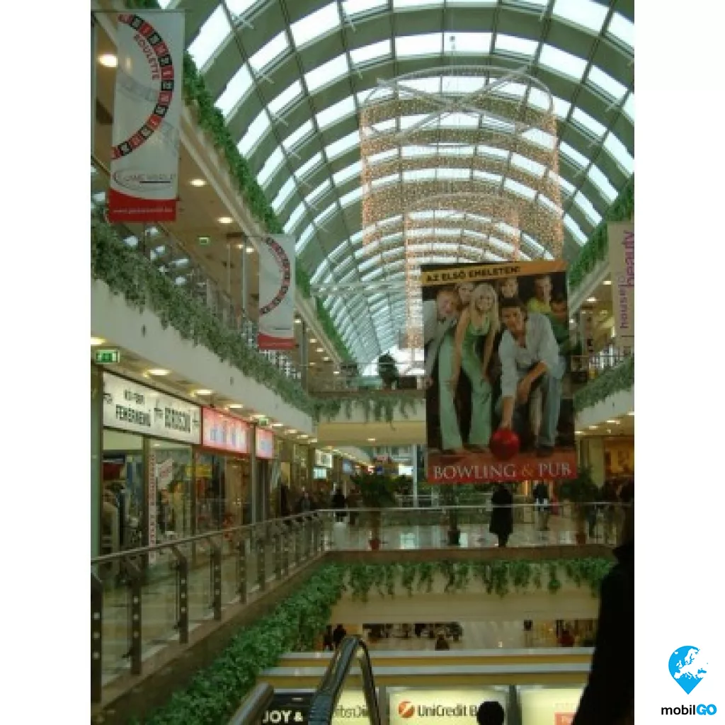 Az üzletközpont elso két szintjén a kereskedelmi és szolgáltató egységek dominálnak, a harmadik szinten pedig a szórakoztatás és a vendéglátás kap helyet.