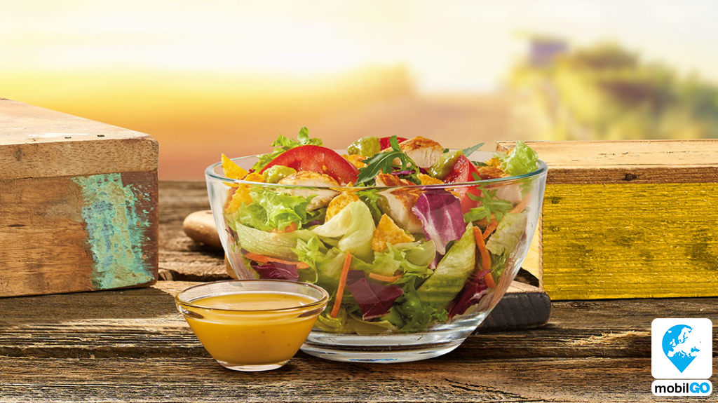 A nyár salátája! Guacamoléval, friss salátával, lédús paradicsommal és az egyedülálló KFC csirkemell filével. Fűszeres mango mártás és paprikás nachos chips teszi utánozhatatlanná!