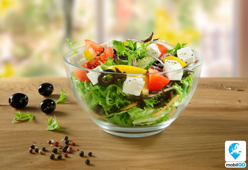 A Görög salátát különleges gonddal válogatott, friss összetevőkből készítjük. Ötféle különböző saláta a legjobb termelőktől, enyhén sós feta-kockákkal, zsenge paradicsommal, ropogós kaliforniai paprikával, friss uborkával, lilahagymával és fekete olivabogyóval. Válassz mellé Caesar vagy Piccante öntetet.