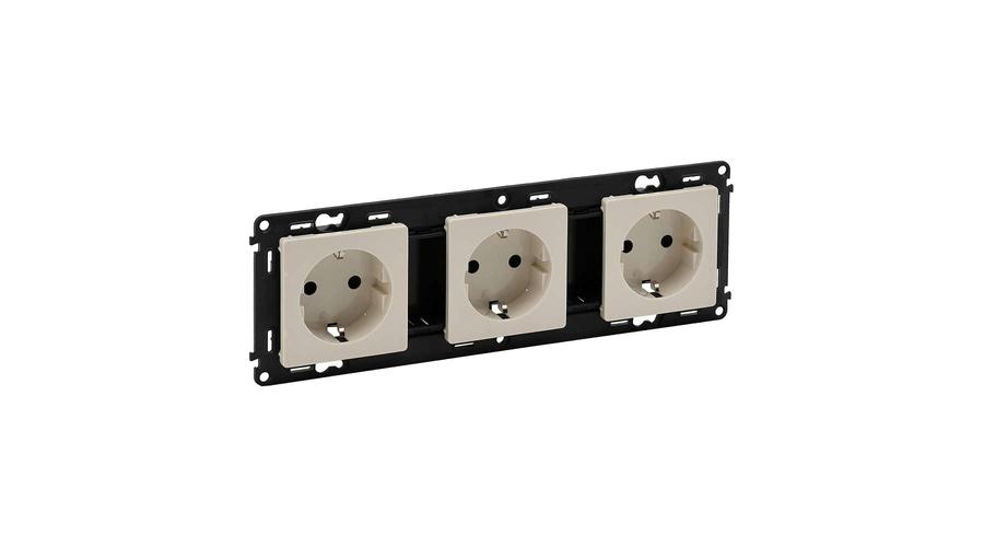 Valena Life 3x2P+F sínezett csatlakozóaljzat gyermekvédelemmel, rugós vezetékbekötéssel elefántcsont