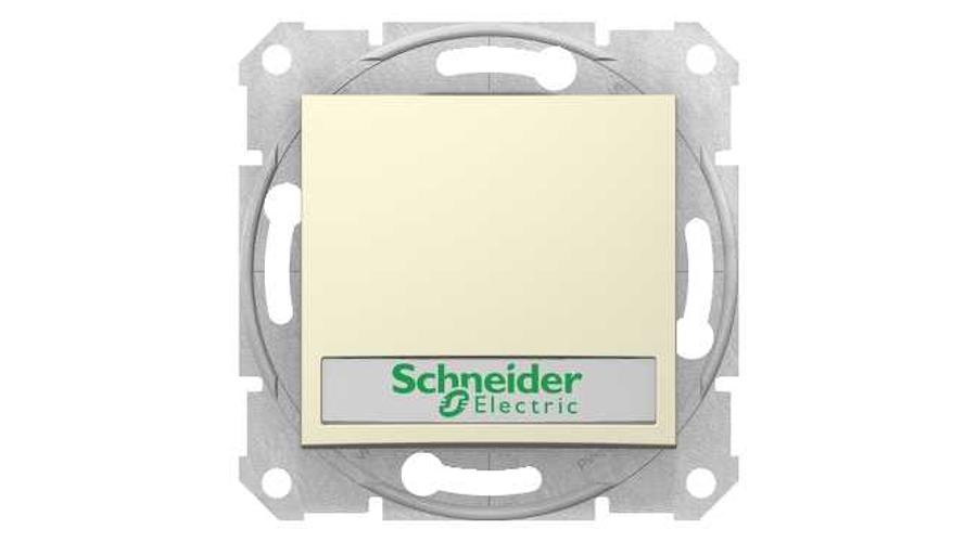 Schneider SEDNA Egypólusú nyomó, kék jelzőfénnyel, cimketartóval, rugós bekötés, 10A, bézs, SDN1600347