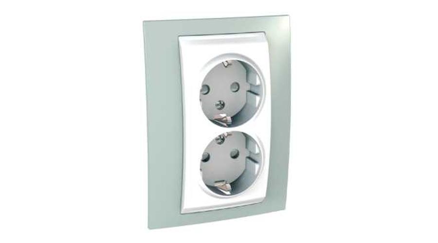Schneider UNICA 2x2P+F csatlakozóaljzat gyermekvédelemmel, csavaros bekötés, 16A, fehér/vízzöld, MGU63.067.870D