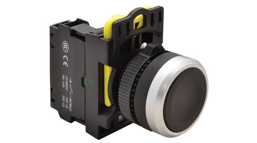 Tracon Egyszerű nyomógomb, fekete [NYG3-BK], 1×NO, 5A/230V AC-15, IP65