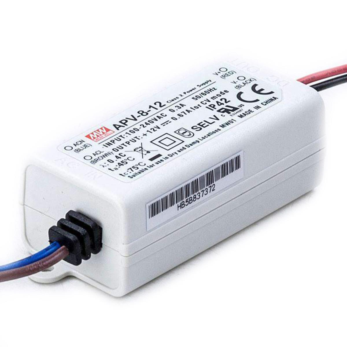 Egykimenetes Mean Well LED tápegység Vin:90-264 VAC/127-370 VDC, Vout: 12 VDC / 0-0,67 A, P:8 W, 60 x 30 x 23,5 mm (L x W x H)