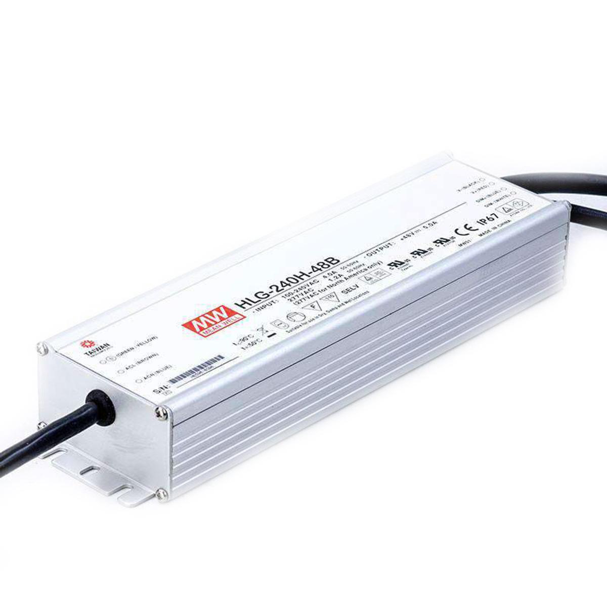 Egykimenetes tápegység Vin:90-305 VAC/127-431 VDC, Vout: 48 VDC / 0-5A, P:240 W, PFC-szűrős, 228 x 68 x 38.8 mm (L x W x H), dimmelhető IP67-es védelem